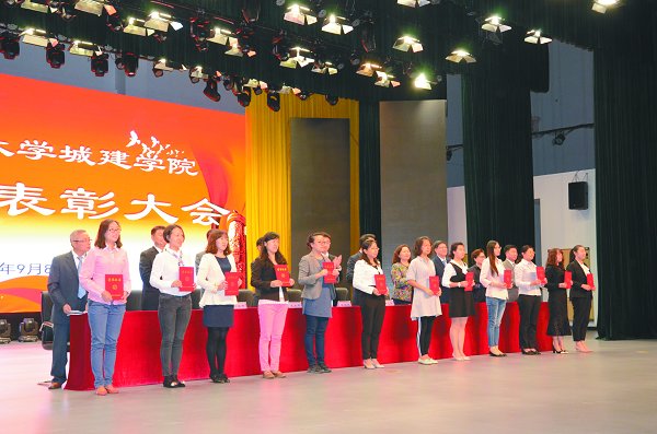 会议分两个阶段进行。第一阶段进行教师节表彰。学校领导为26名获奖教师进行了颁奖。第二阶段进行教学工作会议。分别由建筑与规划学院院长金日学、电气信息工程学院副院长曲娜、管理工程学院院长丁晓欣、艺术设计学院副院长陈希文、基础科学部主任王千,对如何针对学校转型发展抓好教学改革进行了交流发言。然后,韩立强校长做大会工作报告,总结了学校第四次教学工作会议以来,尤其是学校整体转型改革以来取得的主要成果,总结了主要经验和存在的问题,并对下阶段教学工作指导思想、工作目标和主要任务进行了解读和科学部署。会上,陶进副校长宣读了关于通过吉林建筑大学城建学院新版人才培养方案的决议。冉春雨副校长部署了教学工作会议下一阶段的具体任务安排,将利用9月10日至11日两天时间组织机关部门、基层学院领导、部分代表就韩校长在大会上所做的工作报告进行讨论,修改后形成学校文件,并通过学校创新创业学分转换等文件。