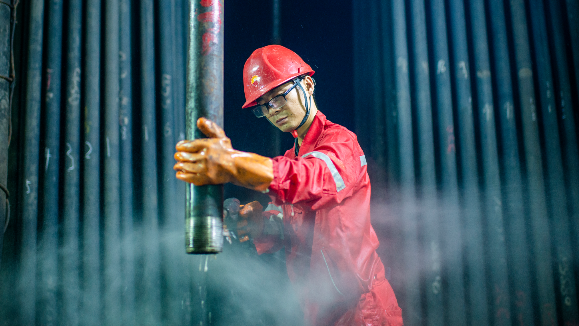 在井口操作的唐鹏是一个责任心很强人。“多清理一遍丝扣总是没错的。”为了保证每根油管都能顺利入井,他特意用水枪再次对丝扣进行冲洗。“我以前就遇到过因为丝扣原因把油管又倒回场地的事情,‘返工活路’最麻烦。”正因为他的仔细和负责,在确认数据、核实现场等方面的工作交给他做,让大家都放心。