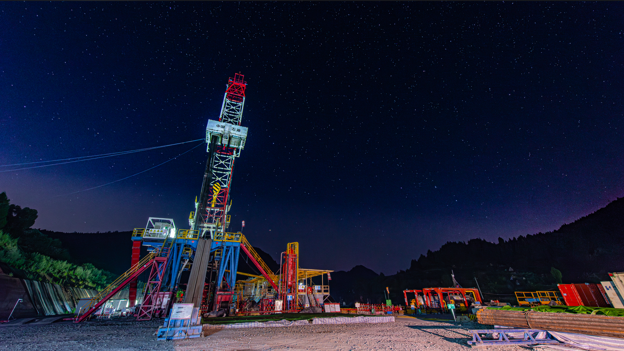 夜已深,高耸的井架矗立在月光下,川庆D23527队员工们依旧在自己的岗位辛勤劳动,如同皎洁的月亮一般,用奋斗点亮寂静的夜晚。