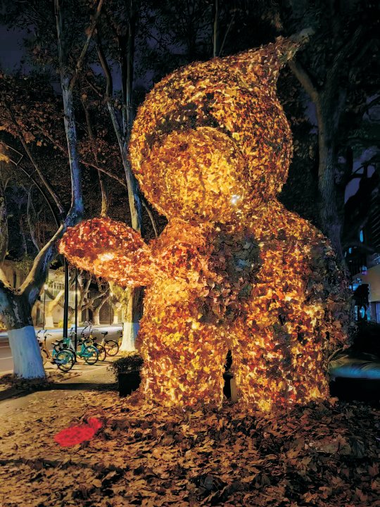 除了南山路,这些落叶雕塑作品还分布在上城区湖滨街道、清波街道、德寿宫、浙大邵逸夫医院(庆春院区)、湘湖管委会、杭州时尚中心及宁波鄞州等各个地点。