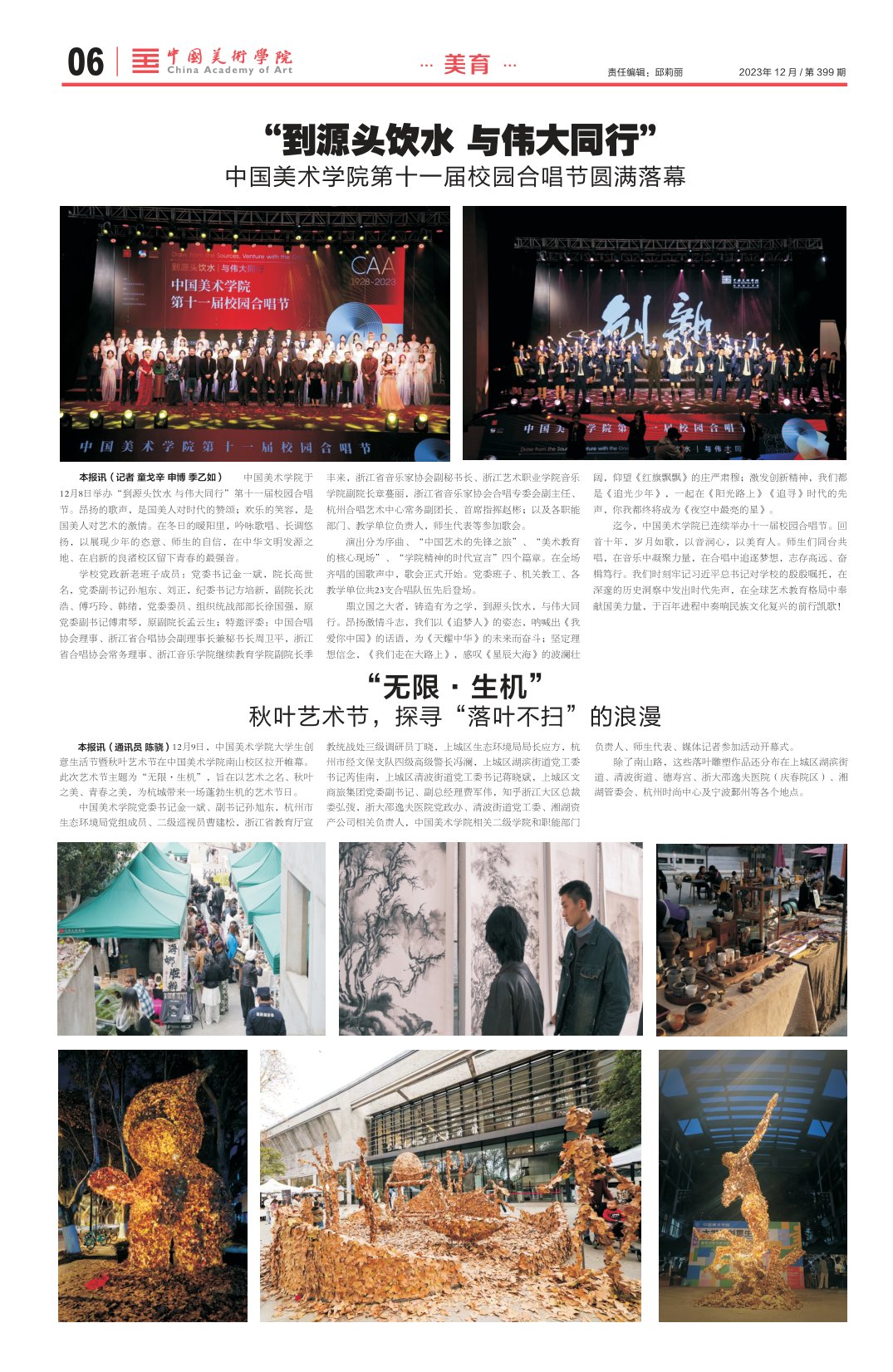 本报讯(通讯员 陈骁)12月9日,中国美术学院大学生创意生活节暨秋叶艺术节在中国美术学院南山校区拉开帷幕。此次艺术节主题为“无限·生机”,旨在以艺术之名、秋叶之美、青春之美,为杭城带来一场蓬勃生机的艺术节日。