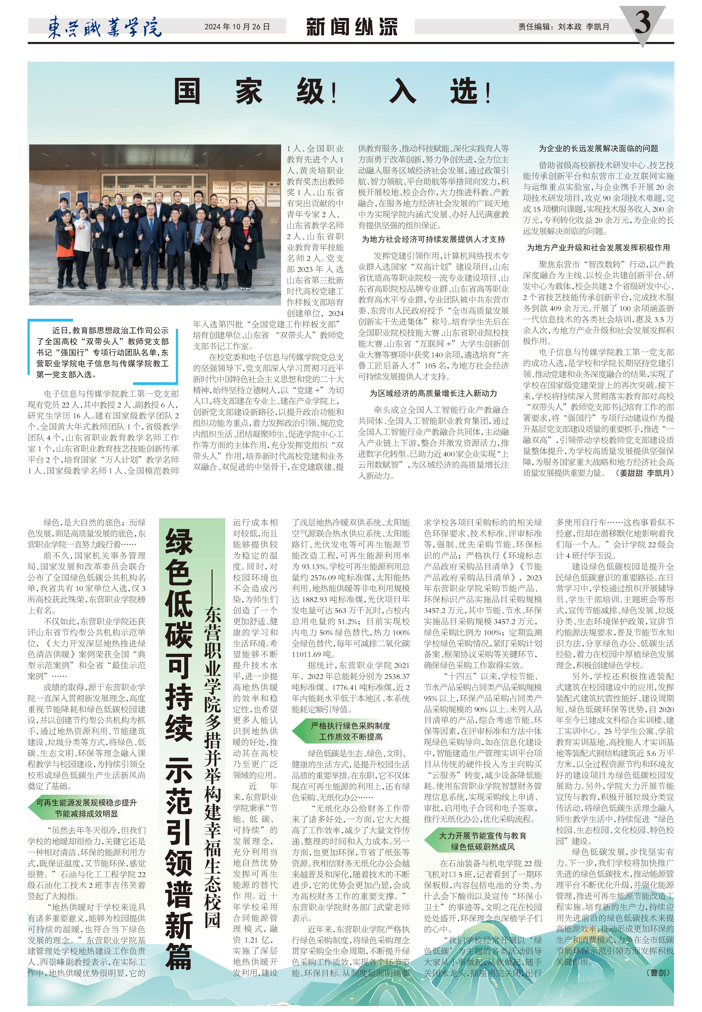 近日,教育部思想政治工作司公示了全国高校“双带头人”教师党支部书记“强国行”专项行动团队名单,东营职业学院电子信息与传媒学院教工第一党支部入选。