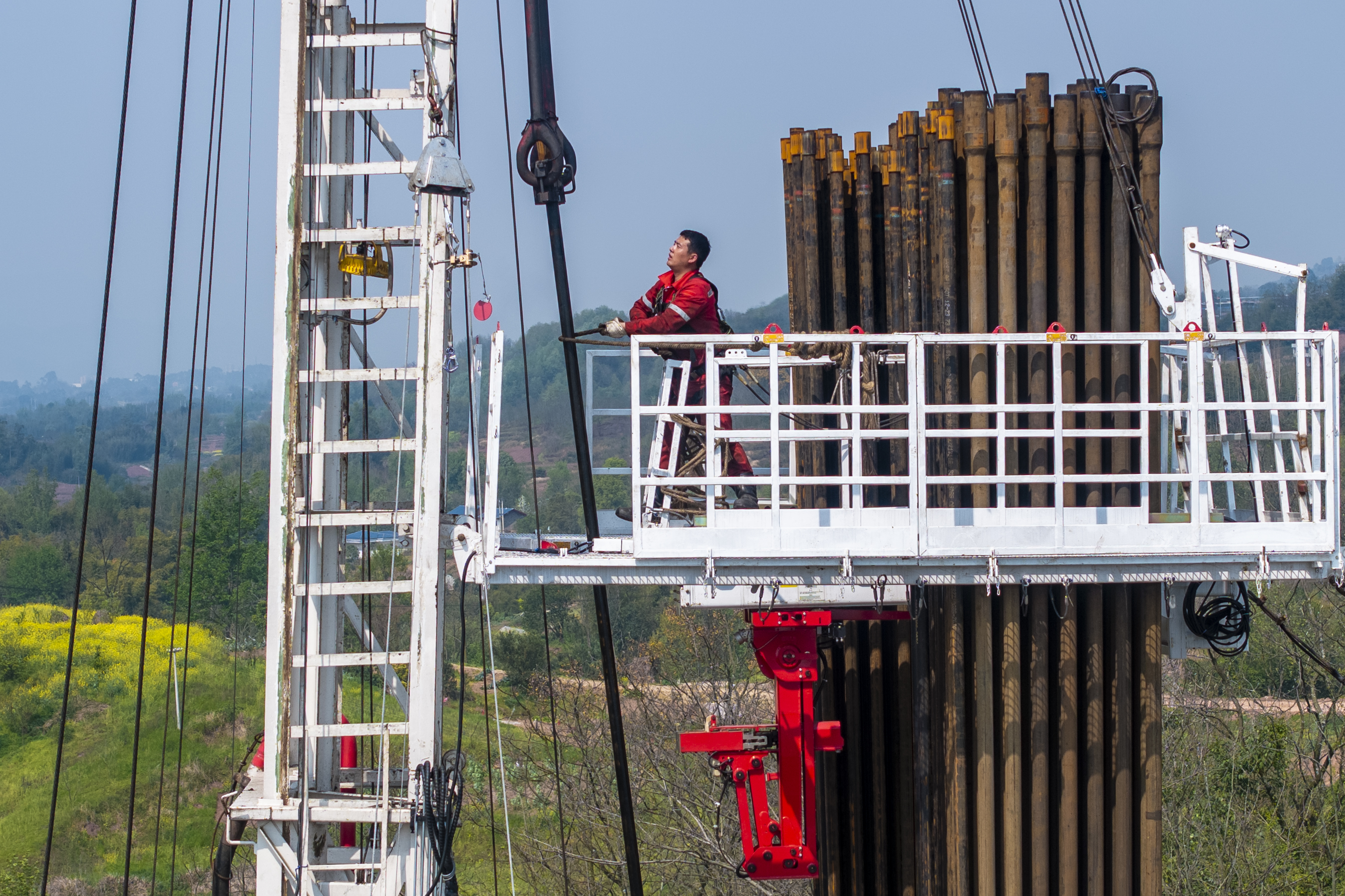 “大半天时间就已经起了100多柱钻杆了,大家动作还是快。”3月30日,重庆市云台镇晴空澄澈,卧61井井场内,川庆D10521队员工们相互配合,紧锣密鼓地进行起钻作业。该井是重庆气矿布置在卧龙河气田南端的一口老井,因整体考虑对其进行永久性封堵,川庆D10521队负责该井的施工任务。经过前期的紧张施工,第一个水泥塞已经注塞成功,目前正在起刮管工具。