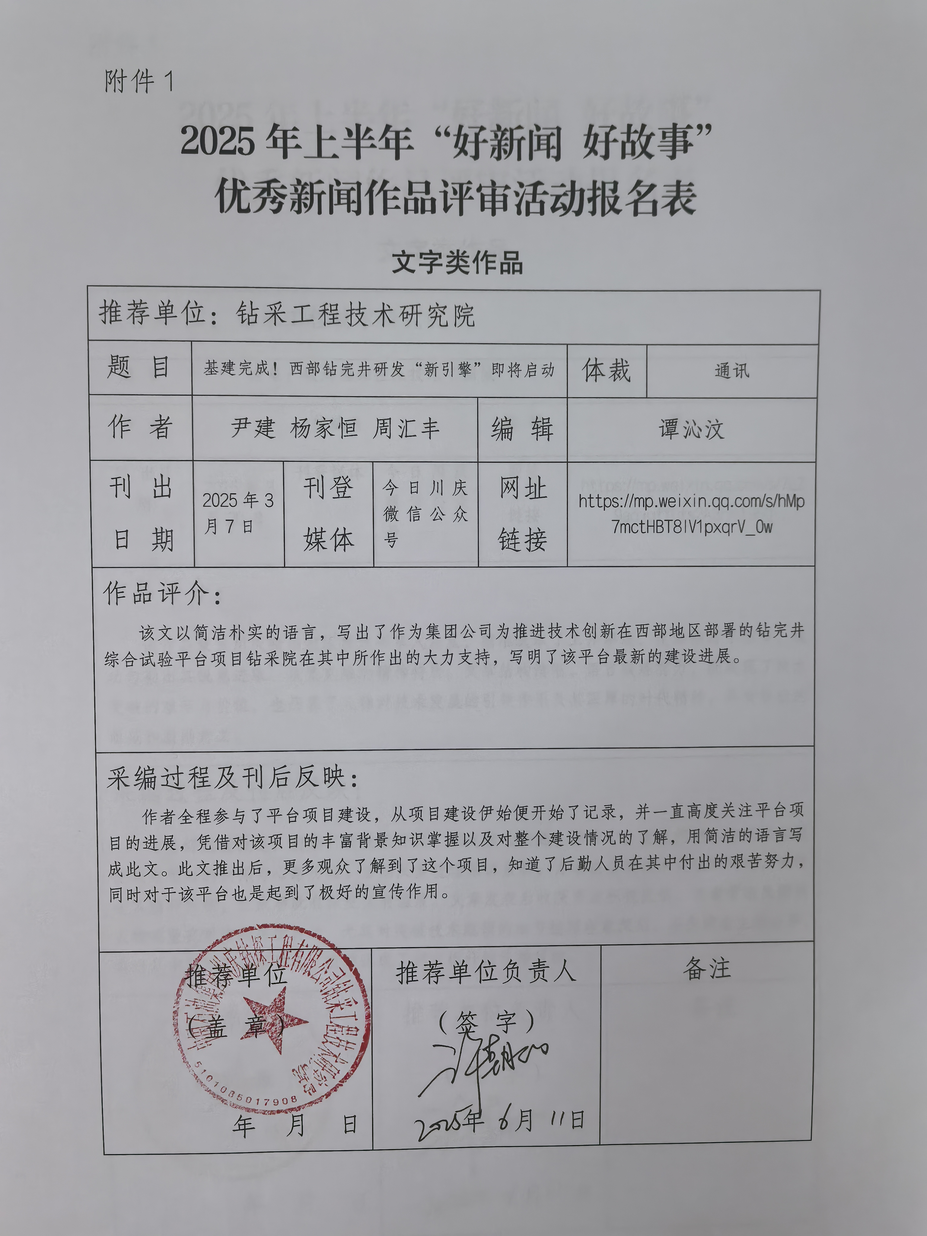 该文以简洁朴实的语言,写出了作为集团公司为推进技术创新在西部地区部署的钻完井综合试验平台项目钻采院在其中所作出的大力支持,写明了该平台最新的建设进展。 基建完成!西部钻完井研发“新引擎”即将启动