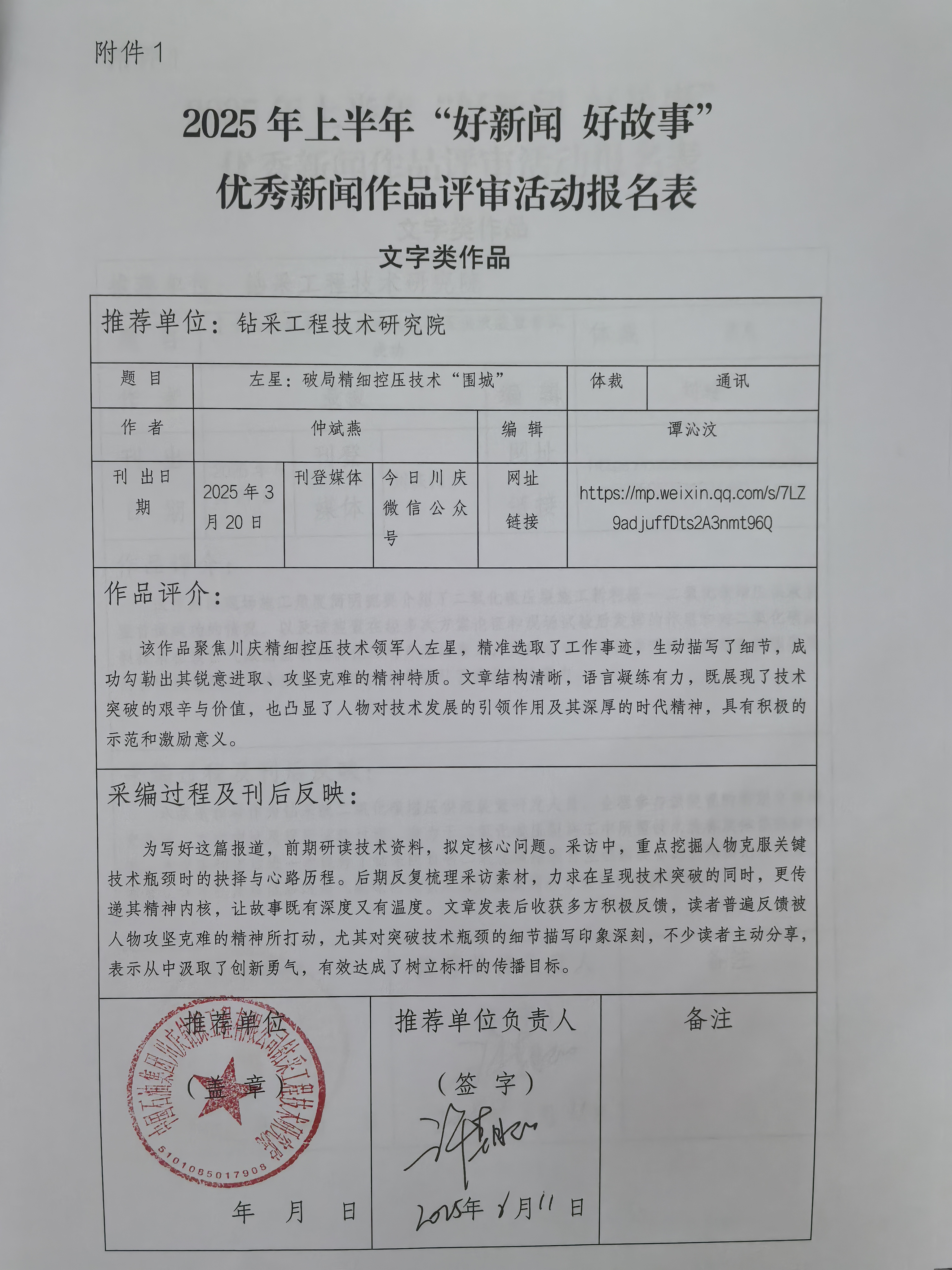 2022年底,左星正式成为川庆精细控压技术团队新一代“领头人”。