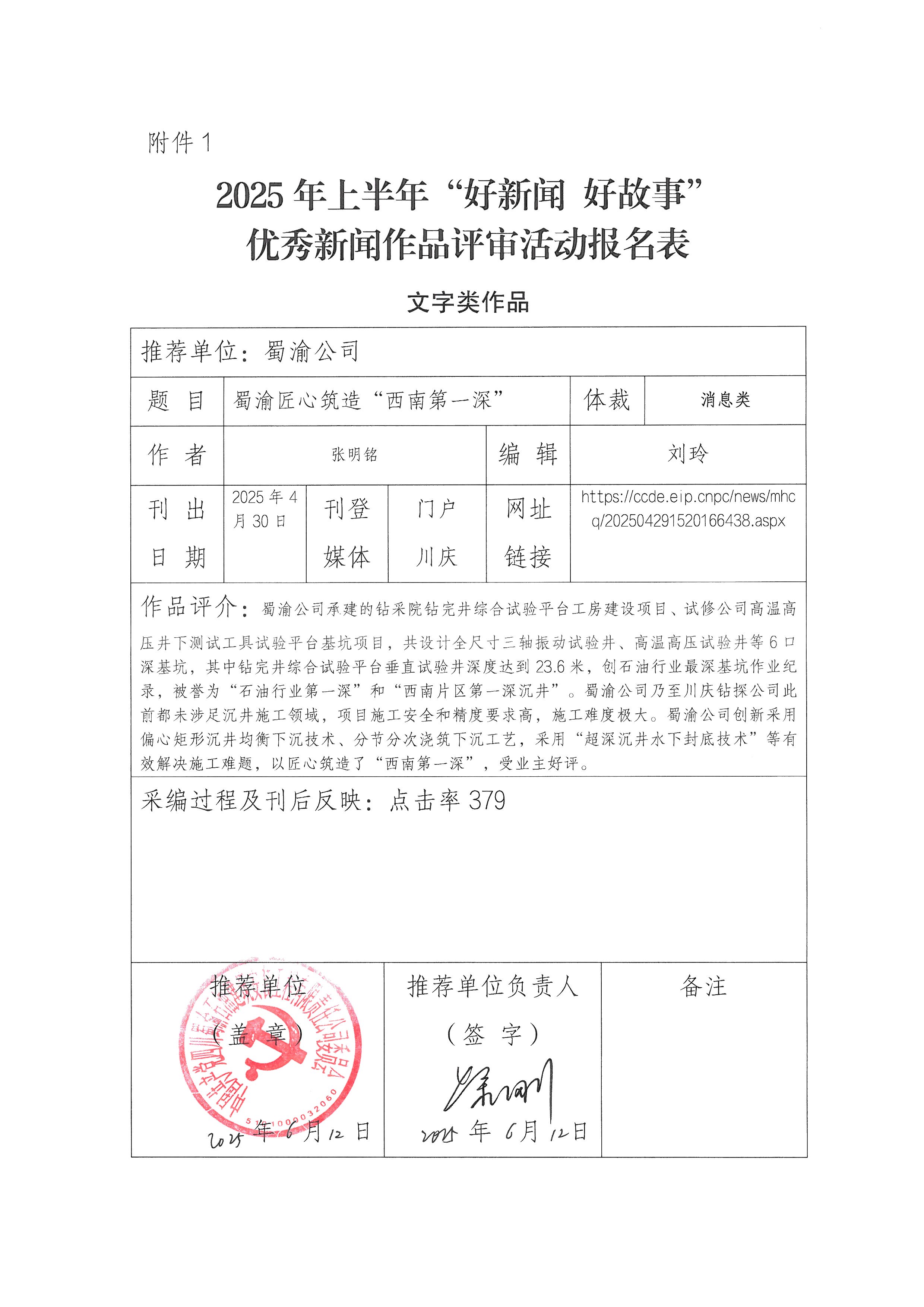 “4月,包含‘西南片区第一深沉井’工程在内的钻采院钻完井综合试验平台工房建设项目、试修公司高温高压井下测试工具试验平台基坑项目相继高质量通过竣工验收,并获得业主方表扬。”4月28日,蜀渝成都分公司生产例会上,生产质量技术办公室主任董志汇报了该公司突破沉井建设施工技术壁垒、开拓沉井施工新领域的情况进展。