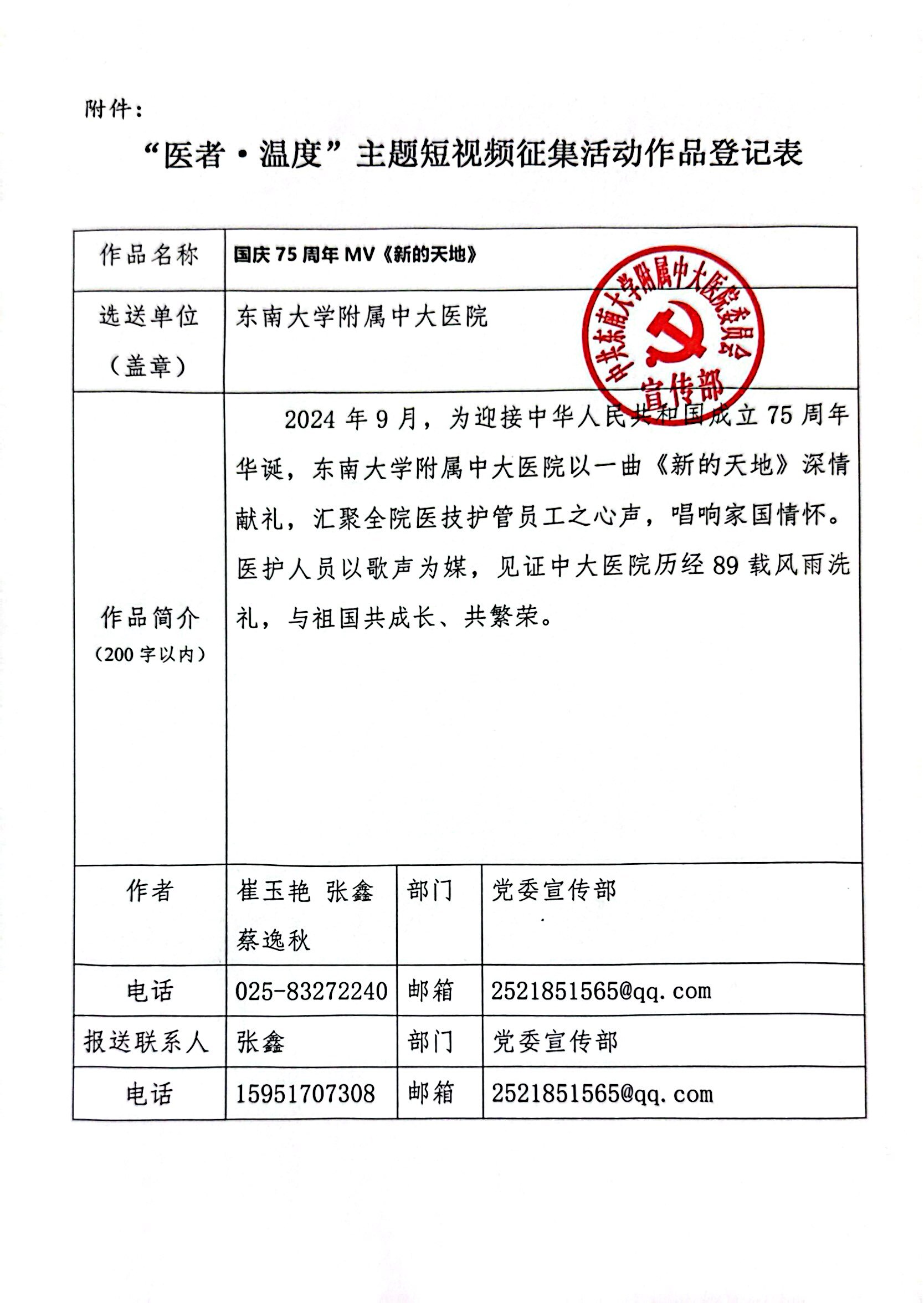 盛世庆华诞,欢歌颂祖国。在中华人民共和国成立75周年到来之际,东南大学附属中大医院以一曲《新的天地》深情献礼汇聚全院医技护管员工之心声唱响家国情怀。