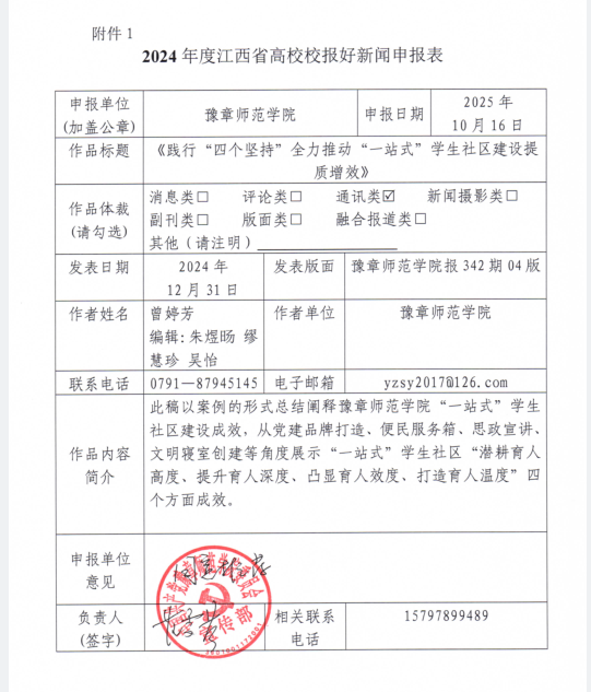 坚持问题导向,构筑师生反馈沟通渠道,提升育人深度。发挥学生社区贴近学生的优势,积极服务学生。在学生公寓设置便民服务箱,宿管员给学生缝补衣物,辅导员深夜陪学生就医等为学生提供“家”一样的服务。在“一站式”学生社区事务服务中心开设窗口,提供在校证明办理、住院报销、资助政策咨询、应征入伍政策咨询、生活驿站等多项服务,累计服务学生2000余次。