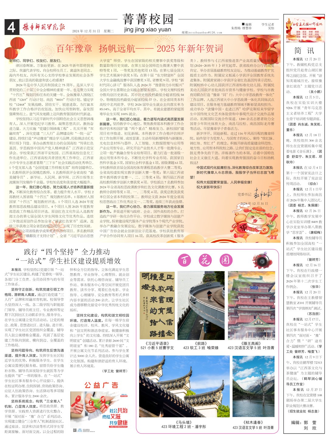 坚持守正创新,构筑党建引领工作格局,潜耕育人高度。通过打造党建“三人行”品牌和双融双育机制,校领导带头坚持深入一线,各二级学院与职能部门领导、辅导员班主任、专业教师等定期下沉到社区主动联系学生、服务学生,在学生公寓建立党员活动站,让党的理论、政策、思想进社区、进头脑、进日常,实现了学生社区党团组织全覆盖、辅导员入驻公寓楼栋全覆盖,巩固了基层党建工作纵向到底、横向到边、全覆盖的工作格局。