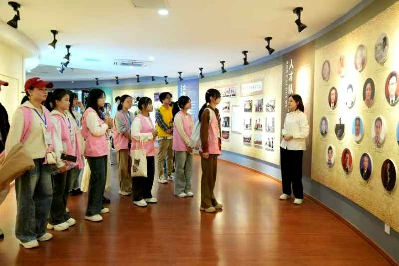 “宜春学院、宜春职业技术学院棒不棒!”“棒!”“黄马甲”与“粉马甲”的碰撞由一张大合照开始。进入校史馆,融媒体中心广播台讲解员带领同学们分别从不同的版块了解我校的发展历史。登上电教楼六楼,首先映入眼帘的是融媒体中心宣传片,“讲好宜春学院故事”的声音徐徐入耳。会议室、部门办公室、播音台……每一个地方都遍布着校媒体人的足迹。