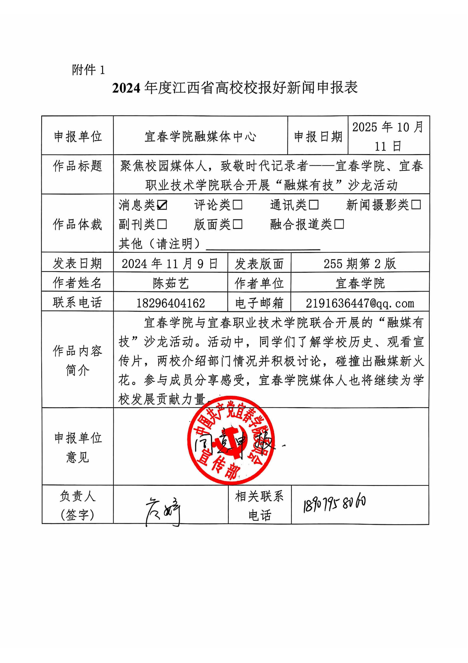 本报讯 在记者节来临之际,为交流融媒经验,传播媒体力量,致敬新闻媒体人,11月8日下午,宜春学院与宜春职业技术学院于我校联合开展“融媒有技”沙龙活动。