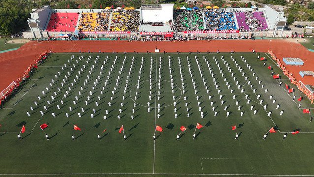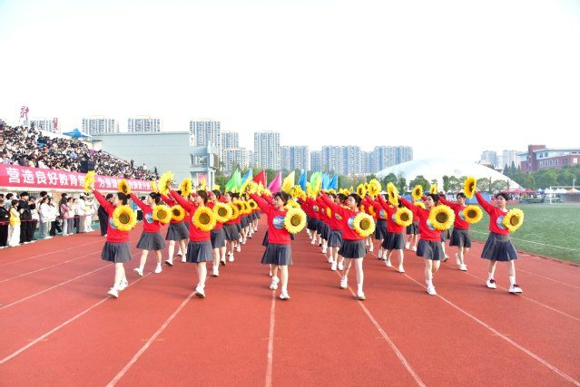 开幕式上,运动员代表和裁判员代表分别进行了公正宣誓。蔡海生宣布宜春学院第二十五届运动会开幕。开幕式结束后,盛大的文体表演如同一幅绚丽多彩的画卷徐徐展开。数条艳丽的巨龙在操场上腾空而起,伴随着激昂的音乐,龙身翻转腾跃,所有巨龙在阳光下熠熠生辉,充分展示了舞龙者的气质和神韵,他们每一次的挥舞都蕴含着对中华优秀传统文化的敬意与传承。紧接着,武术和太极拳表演为开幕式增添了一抹刚柔并济的风采。武术表演者身姿矫健,拳风凌厉,刀光剑影中展现出中华武术的博大精深与无穷魅力,让人目不暇接。而太极拳方阵则如同一股清流,缓缓流淌在喧嚣之中,表演者们动作舒缓流畅,气定神闲,一招一式间尽显太极的阴阳调和、以柔克刚之美,仿佛时间在这一刻都放慢了脚步,让人心灵得到了净化与放松。随后,组合舞蹈表演将现场气氛推向了又一个高潮。健美操队伍以整齐划一的动作、充满活力的节奏,展现了青春的无限可能与热情洋溢;国标舞者们则以优雅的姿态、默契的配合,演绎了一段段经典而浪漫的舞步;啦啦操团队更是以热情奔放、动感十足的表演,用他们的笑容与汗水,点燃了全场的激情,每一个跳跃、每一次呐喊都充满了对运动精神的颂扬与对团队力量的彰显。这一系列精彩纷呈的表演,不仅展现了学子们的多才多艺与青春活力,更深刻诠释了体育精神与文化传承的和谐共生,为运动会开幕式画上了圆满句号。
