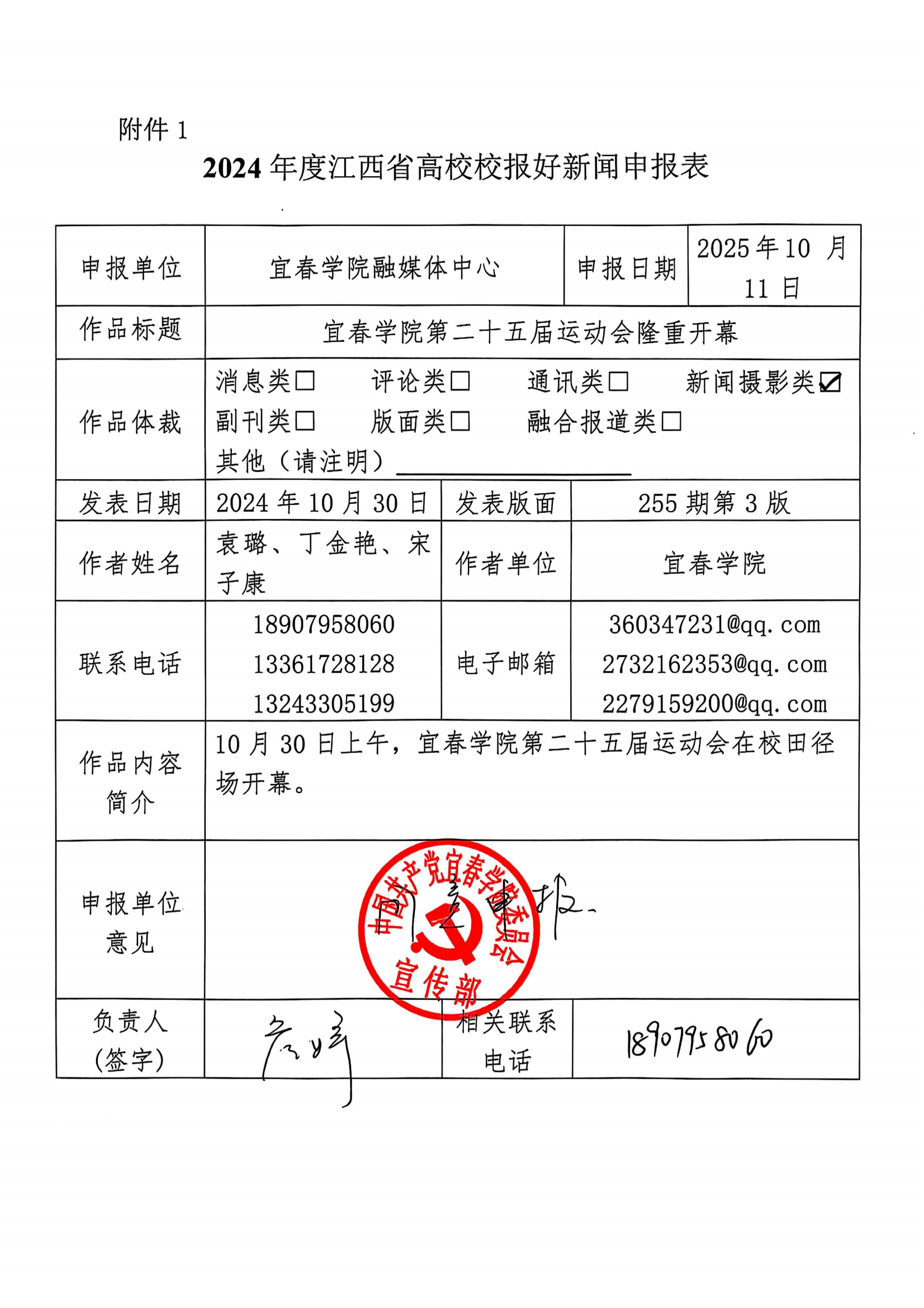 本报讯 展示青春风采,角逐体育赛场。10月30日上午,宜春学院第二十五届运动会在校田径场隆重开幕。宜春市教育体育局副局长吴朝军,在家校领导蔡海生、严青松、余新卫、罗政、张梅、李建军、谢芳出席,各职能部门、教学院负责同志和师生代表参加。开幕式由校党委委员、副校长、校运会组委会主任余新卫主持。