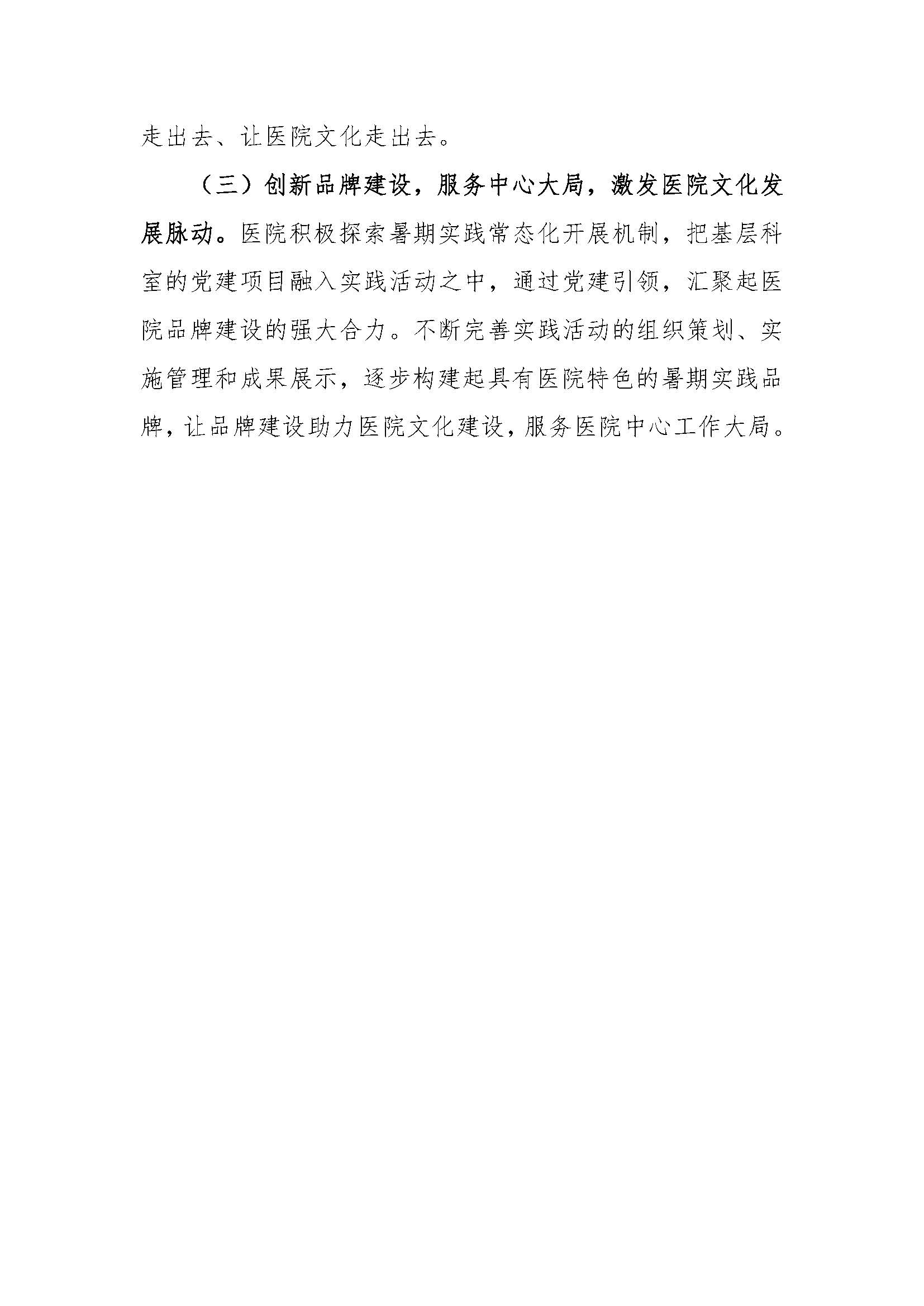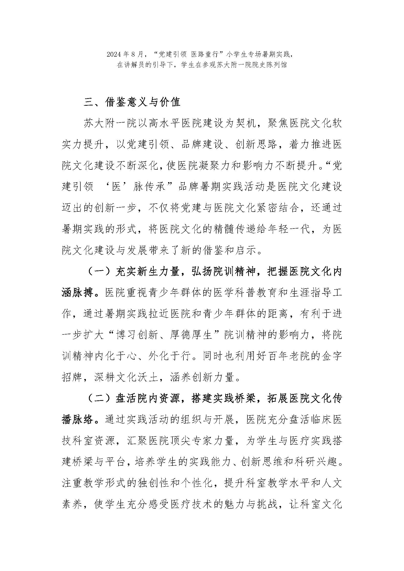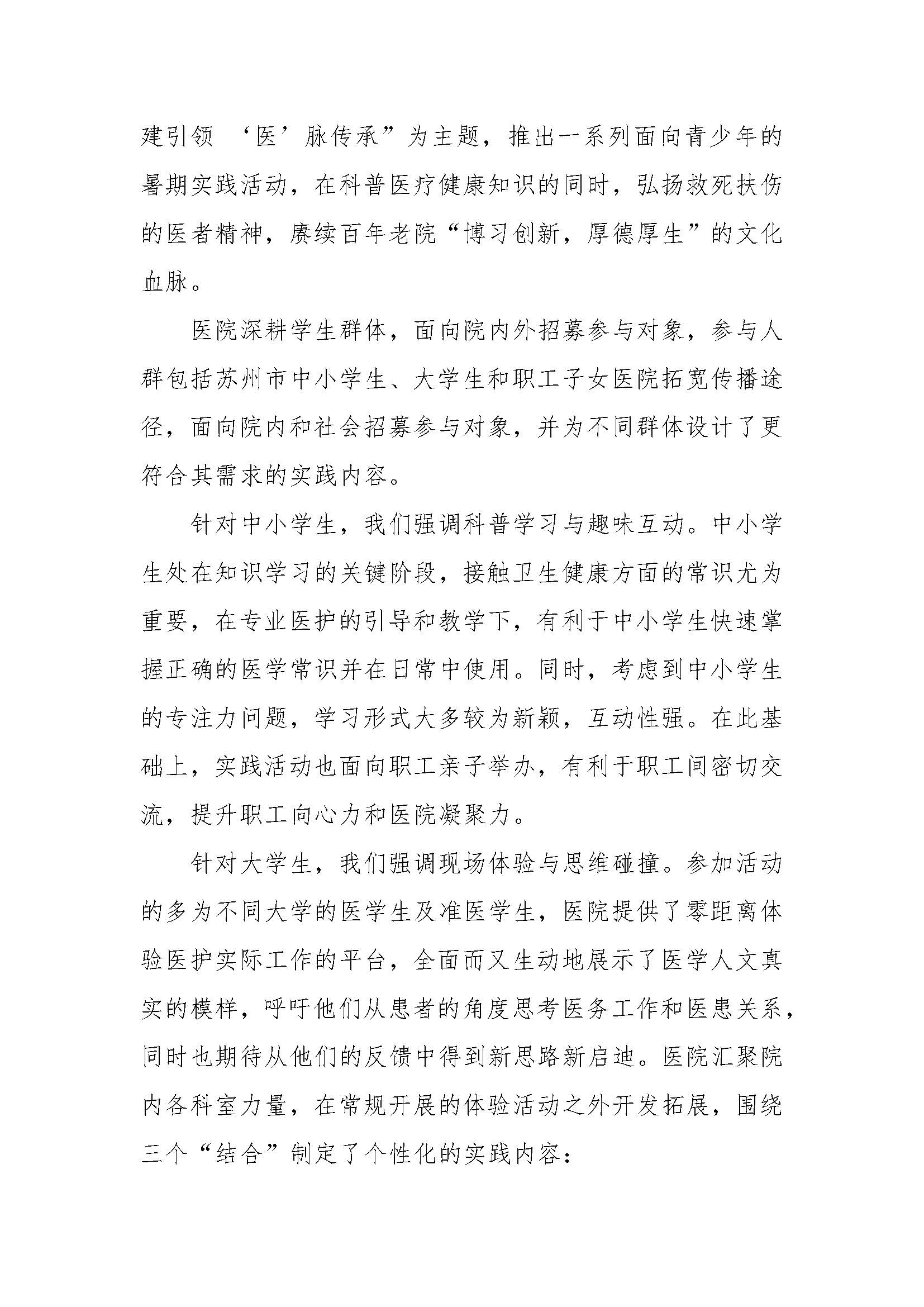 党建引领 “医”脉传承 搭建有医院特色的暑期实践文化平台