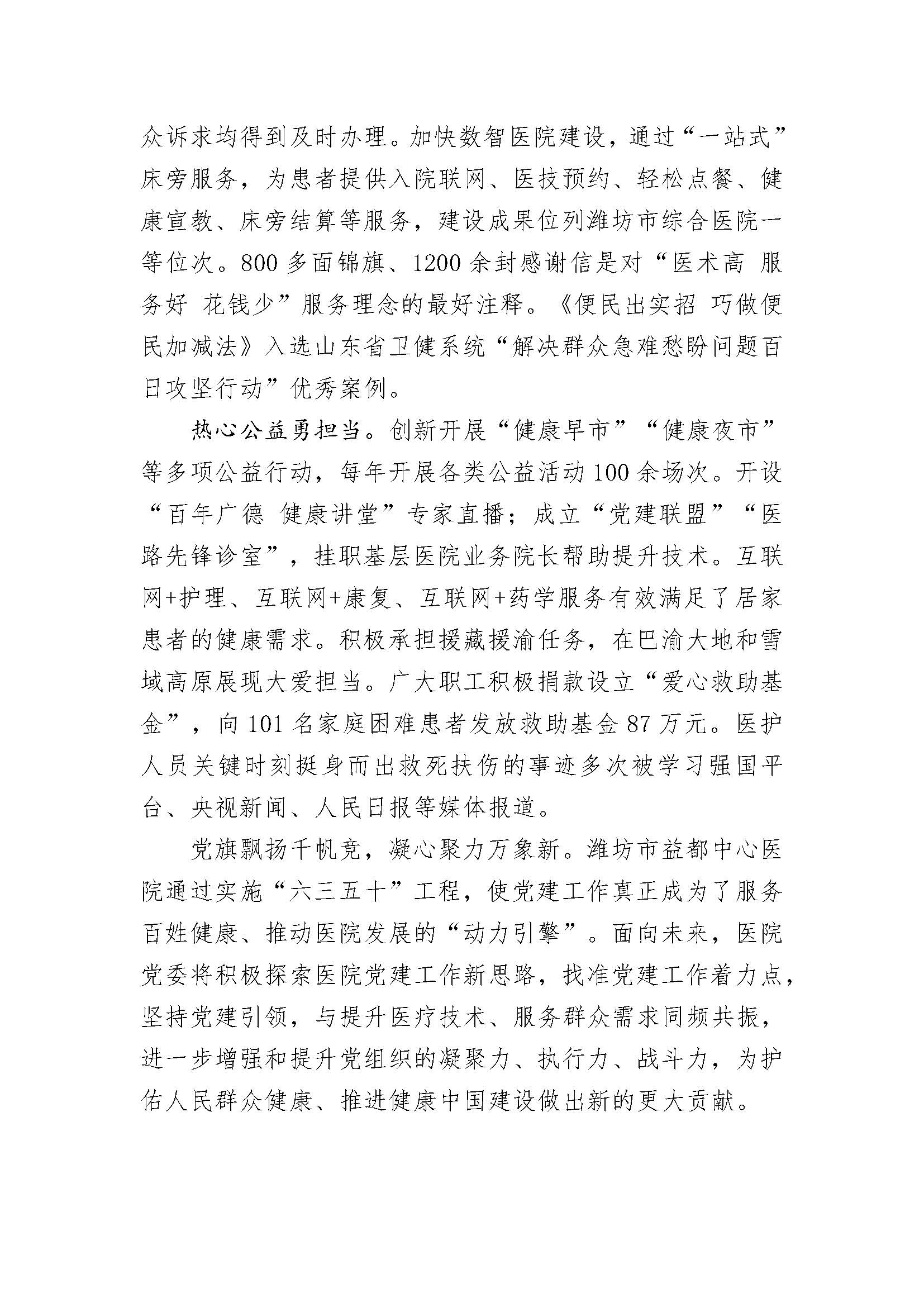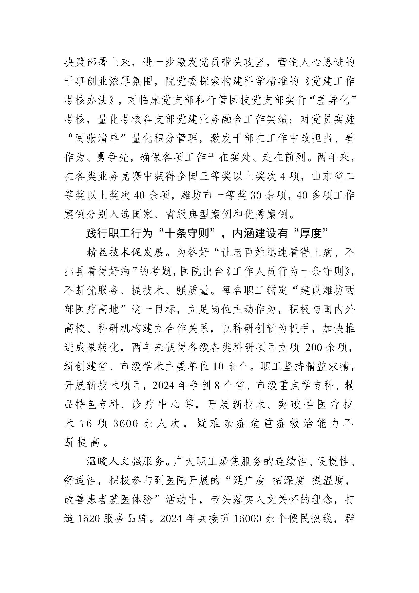 传承红色基因 实施“六三五十”工程 引领医院高质量发展