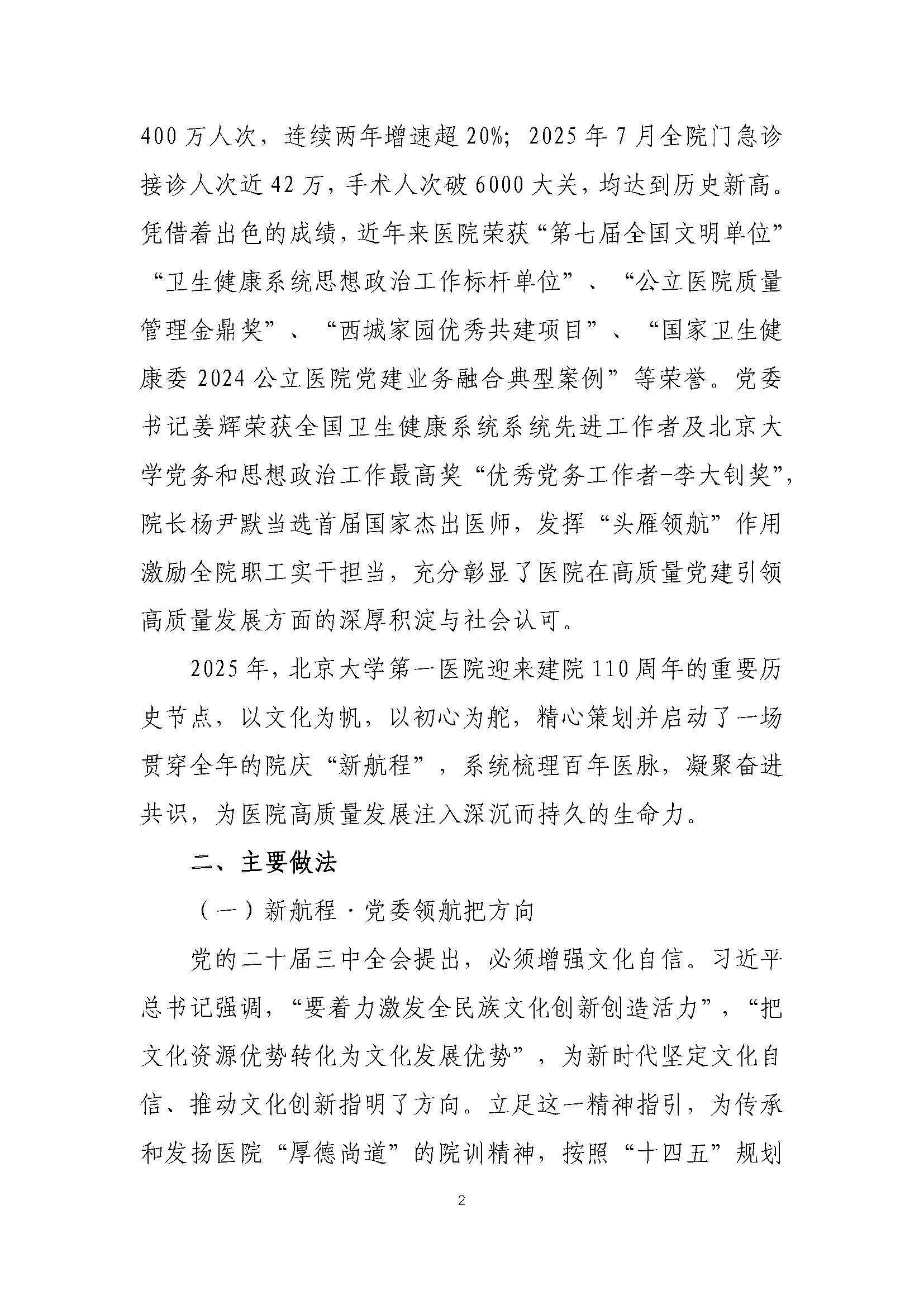 党委领航文化铸魂,百十厚道扬帆新程 ——北京大学第一医院以系统化文化工程