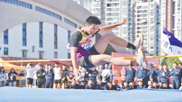春来百种戏,天意在宜秋。23日下午在短跑赛场上,国防教育学院的选手犹如一道划破长空的黑色闪电,每一次他的出现都是一场视觉与速度的盛宴。发令枪响,他如离弦之箭般冲出起跑线,观众只能看到一道模糊的黑色身影,在赛道上风驰电掣;与此同时跳高比赛中,运动员深吸一口气,调整呼吸,仿佛整个世界都静止了,只剩下他和那根横杆。助跑,起跳,过杆,一系列动作如猿跳高岳般行云流水。起跳的瞬间,他仿佛一只腾空而起的雄鹰,向着目标奋力翱翔。身体在空中划出一道优美的弧线,仿佛一幅动人的画卷。博观而约取,厚积而薄发。我们看到的往往是夺冠后的剑指苍天,调侃着云淡风轻的回头望月,却忽略了光芒背后的无数次跌倒,又无数次站起来。他们用自己的汗水和努力,书写着属于自己的传奇。