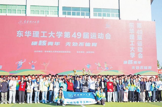 ▲25 日上午,东 华 理 工 大 学 第四十九届运动会正式闭幕,全体运动 员 工 作 人 员 拍照留念。