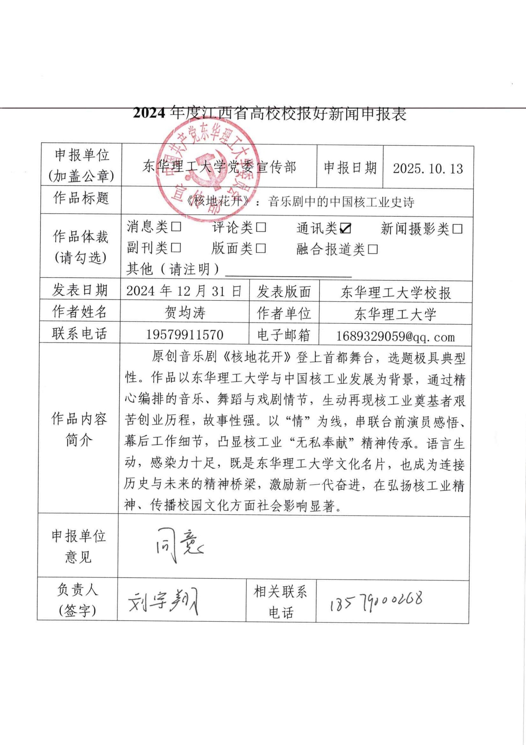 《核地花开》不仅仅是一部音乐剧,它是时间长河中的一颗璀璨明珠,凝聚着无数人的汗水与梦想,深深地印刻在每一位参与者的心中。每位艺术者捧起的一抔土垒起了《核地花开》成功的九尺高台;而核精神背后每位奉献者追随时代的足迹,筑起核精神的漫漫长途,不断更新着东华理工大学核工业精神在校园,在社会乃至在国家的精神特征。