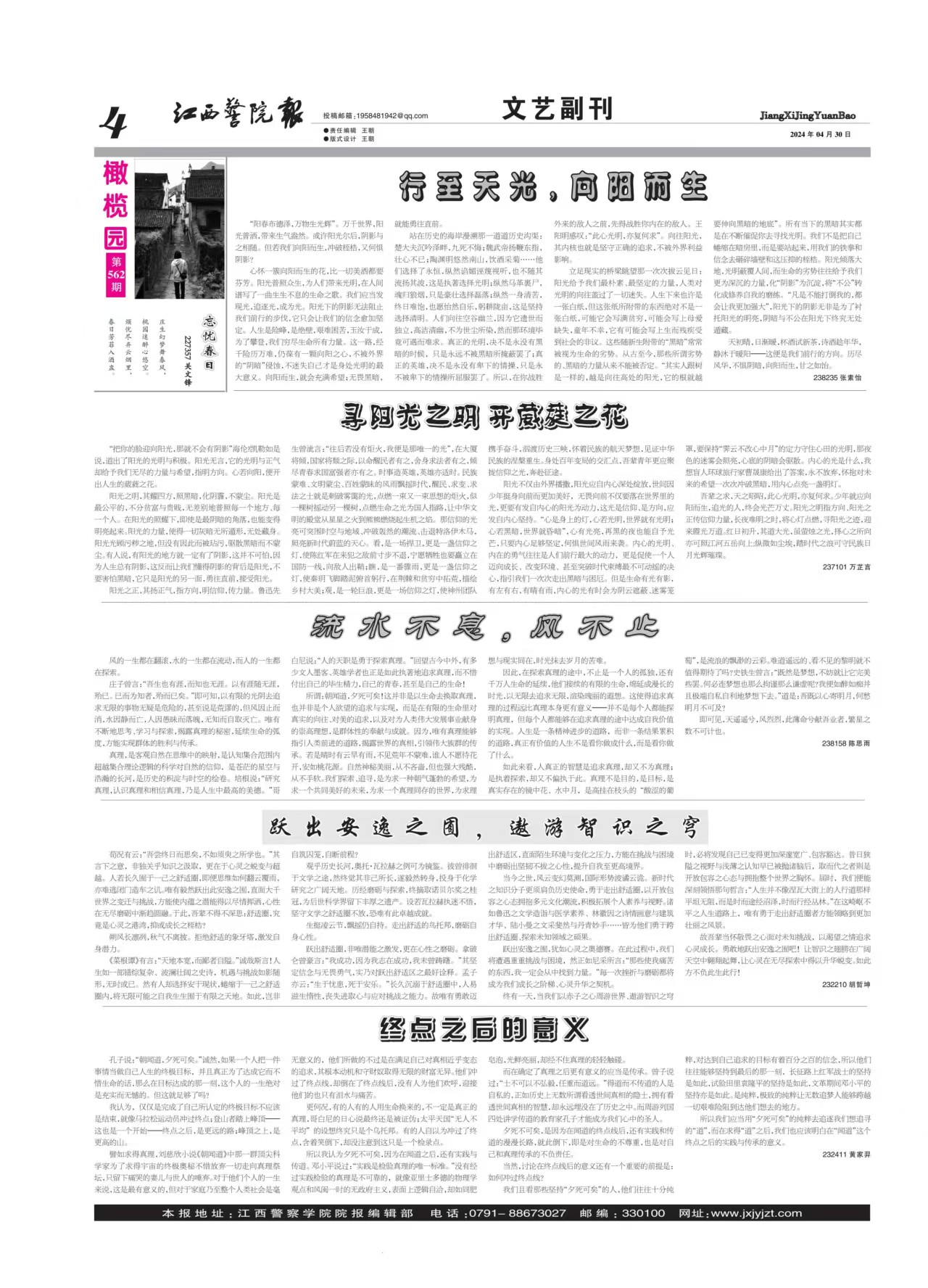 吾辈之求,天之昭昭,此心光明,亦复何求。少年就应向阳而生,追光的人,终会光芒万丈。阳光之明指方向、阳光之正传信仰力量,长夜难明之时,将心灯点燃,寻阳光之迹,迎来霞光万道。红日初升,其道大光,虽萤烛之光,择心之所向亦可照江河五岳向上:纵微如尘埃,踏时代之浪可守民族日月光辉璀璨!