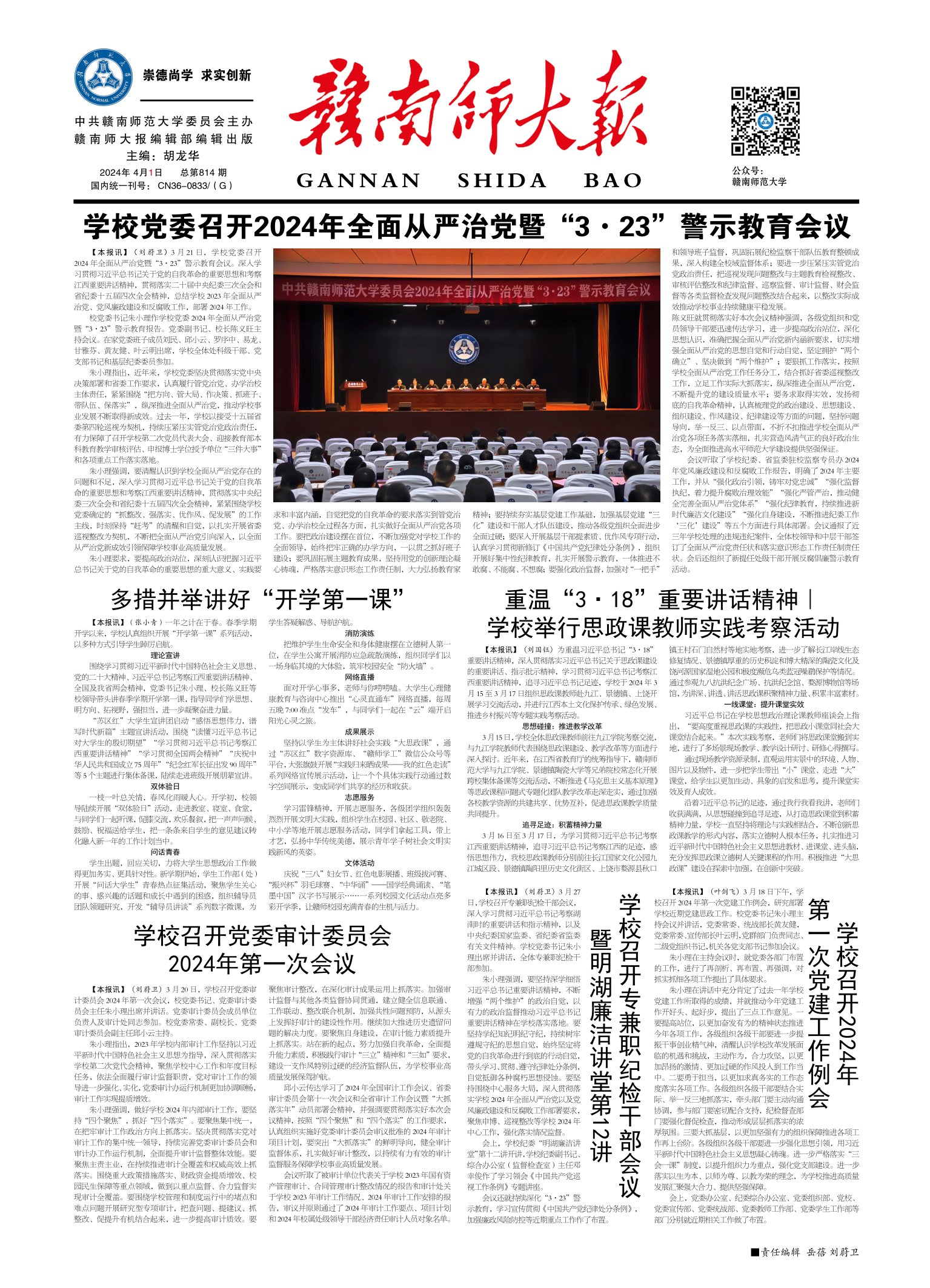 思想碰撞:推进教学改革3月15日,学校全体思政课教师前往九江学院考察交流,与九江学院教师代表围绕思政课建设、教学改革等方面进行深入探讨。近年来,在江西省教育厅的统筹指导下,赣南师范大学与九江学院、景德镇陶瓷大学等兄弟院校常态化开展跨校集体备课等交流活动,不断推进《马克思主义基本原理》等思政课程问题式专题化团队教学改革走深走实,通过加强各校教学资源的共建共享、优势互补,促进思政课教学质量共同提升。