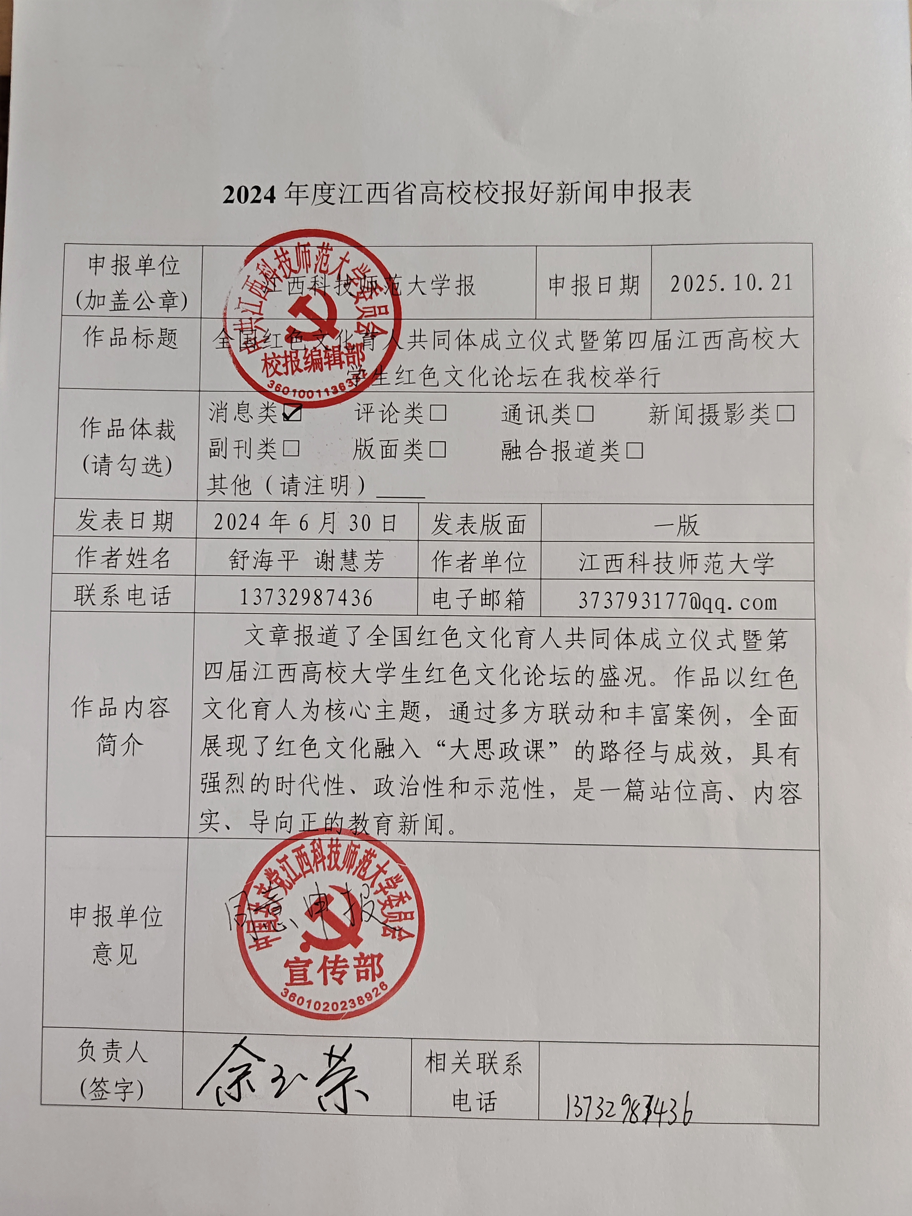 全国红色文化育人共同体成立仪式暨第四届江西高校大学生红色文化论坛在我校举行