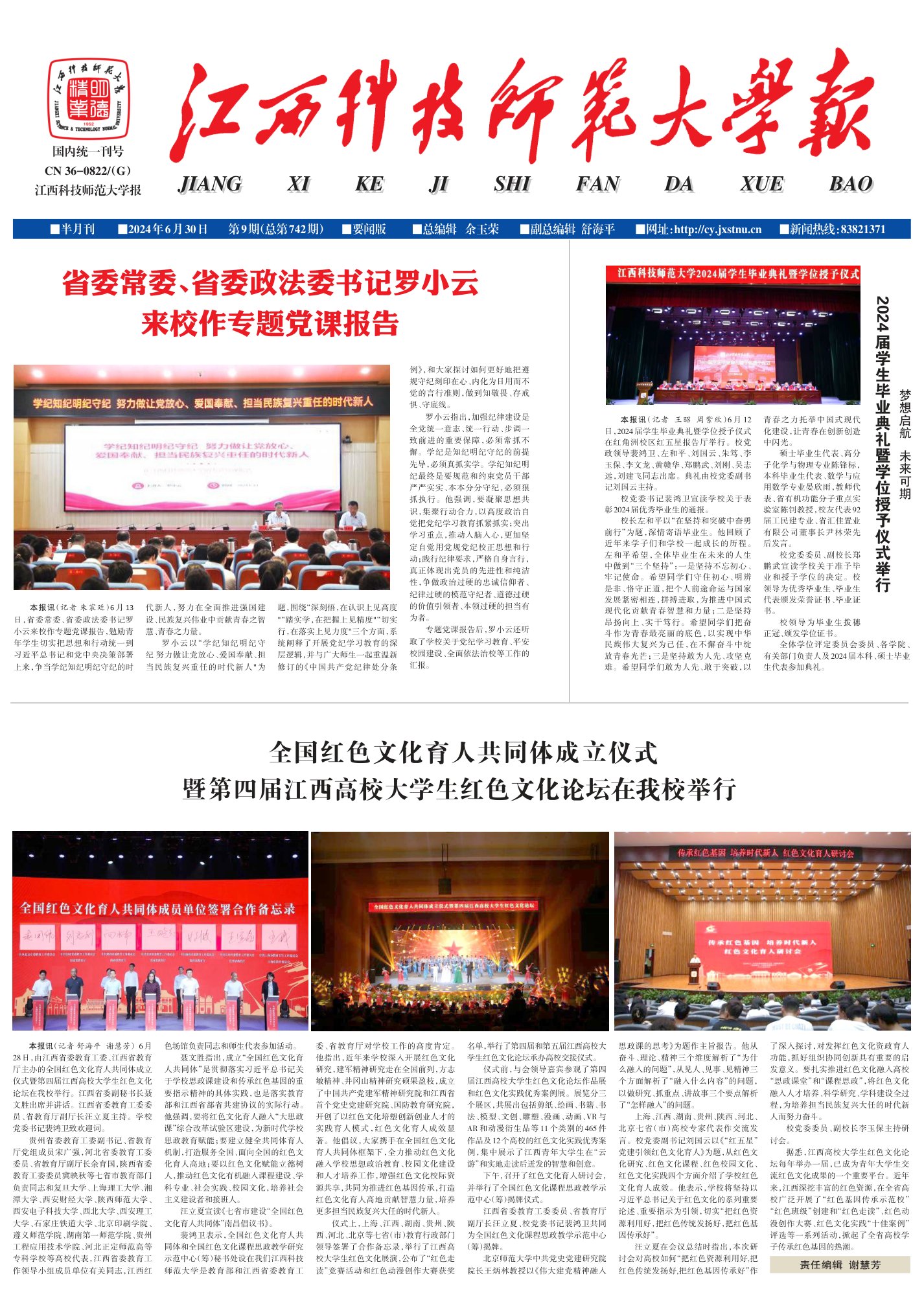 本报讯(记者舒海平 谢慧芳)6月28日,由江西省委教育工委、江西省教育厅主办的全国红色文化育人共同体成立仪式暨第四届江西高校大学生红色文化论坛在我校举行。江西省委副秘书长聂文胜出席并讲话。江西省委教育工委委员、省教育厅副厅长汪立夏主持。学校党委书记裴鸿卫致欢迎词。