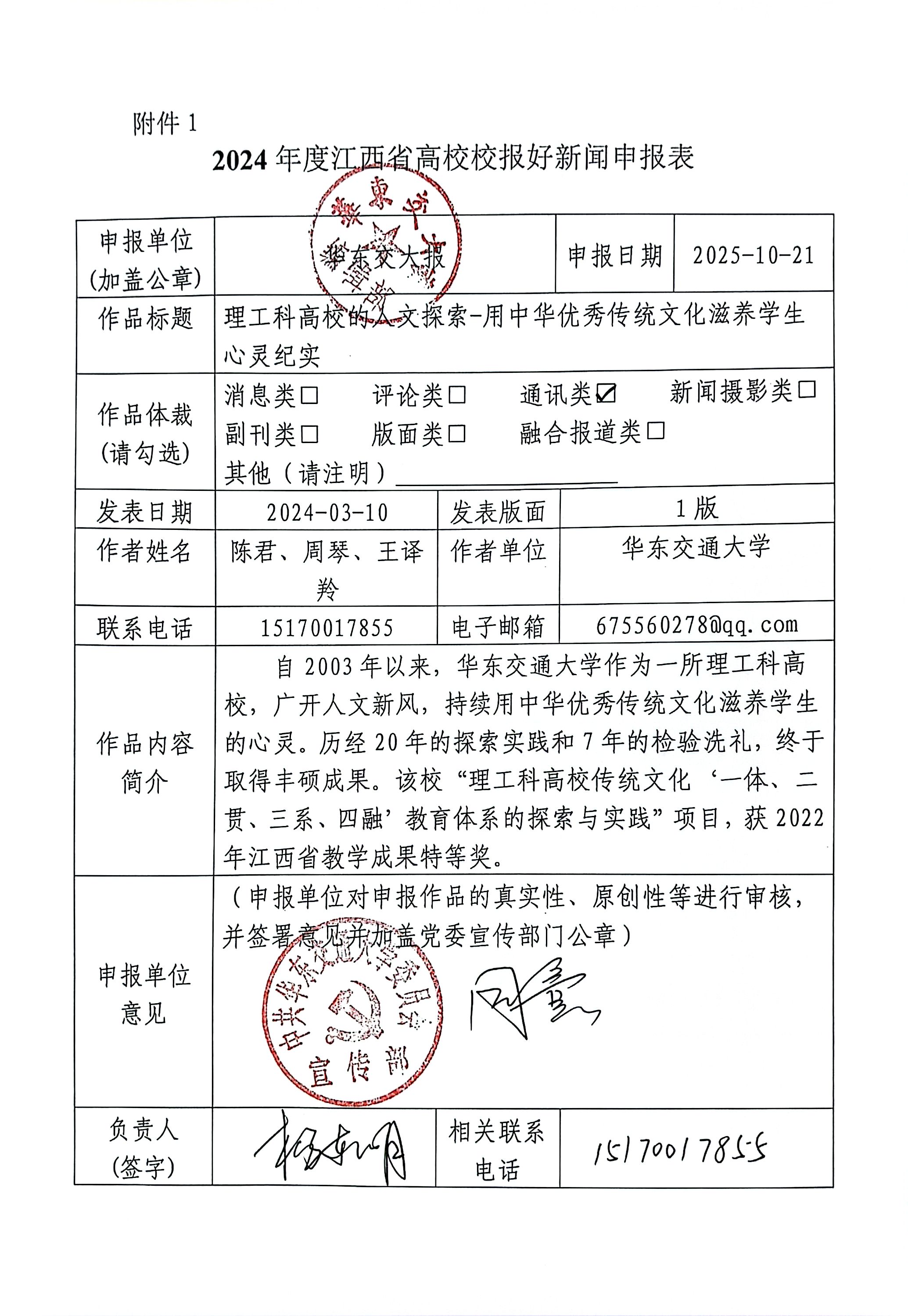 校党委书记柳和生说:“坚持‘两个结合’,推动新时代高等教育高质量发展,赓续中华文脉,探索建立中华优秀传统文化育人新模式,是我们义不容辞的责任和刻不容缓的任务。”“理工科高校传统文化‘一体、二贯、三系、四融’教育体系的探索与实践”项目经过多年的打磨和积淀,已建立成熟的高校中华优秀传统文化传承教育体系,且日臻完善。该成果覆盖领域广,在江西处于领先水平并具有一定的影响力,其教育教学思想和教学改革研究与实践具有创新性和鲜明特色,对全国高校以及中小学开展中华优秀传统文化教育具有很好的示范作用。