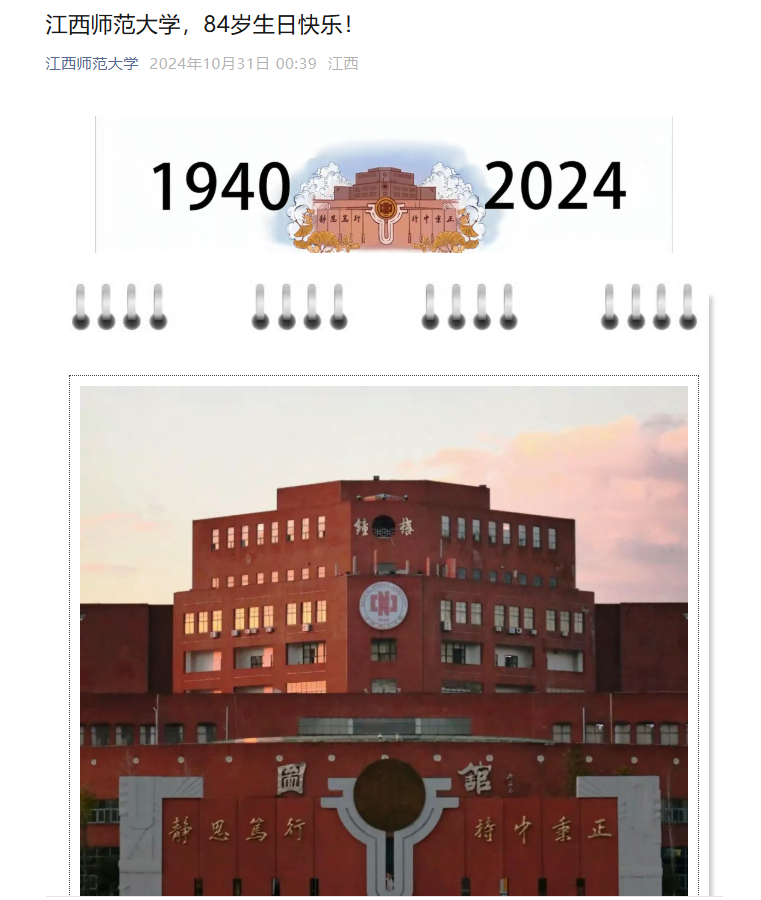 本作品以江西师范大学84周年校庆为主题,通过图文并茂的形式回顾了学校自1940年建校以来的发展历程。内容涵盖校史沿革、重要事件、师生风采及近年荣誉,彰显了学校“静思笃行,持中秉正”的育人理念。特色在于结合历史照片与现代影像,生动呈现了八十四载薪火相传的厚重底蕴与时代活力。作品还收录了师生校友的深情祝福,体现了一代代师大人的凝聚力与归属感。