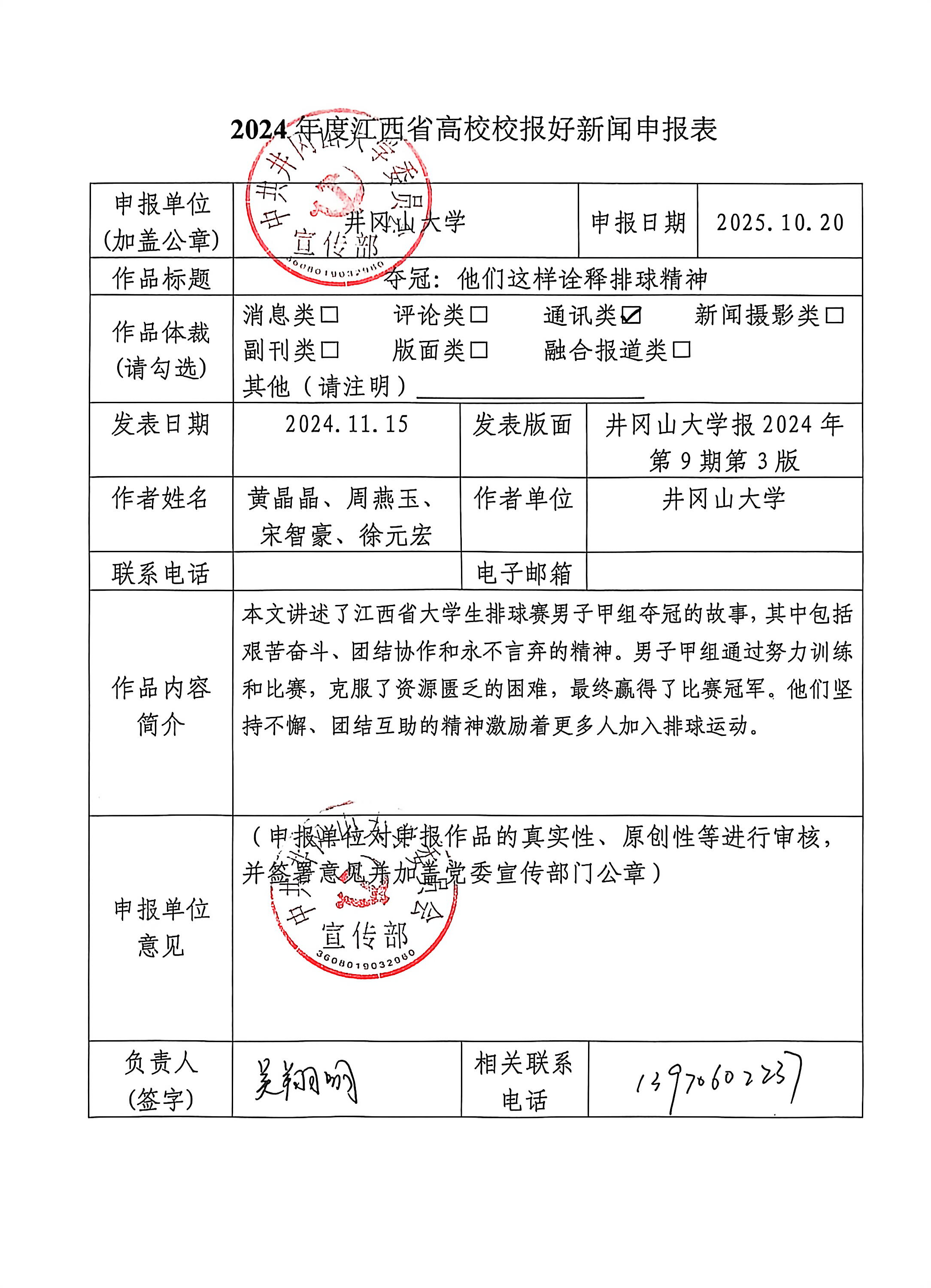 2024 年 9 月 20 日至 28 日,由江西省教育厅主办的江西省大学生排球赛在井冈山市举办,我校本科男子甲组(普通组)获冠军,创我校参赛历史最好成绩。 本报记者对校排球队男子甲组进行采访,从中探索他们成为冠军组的故事。