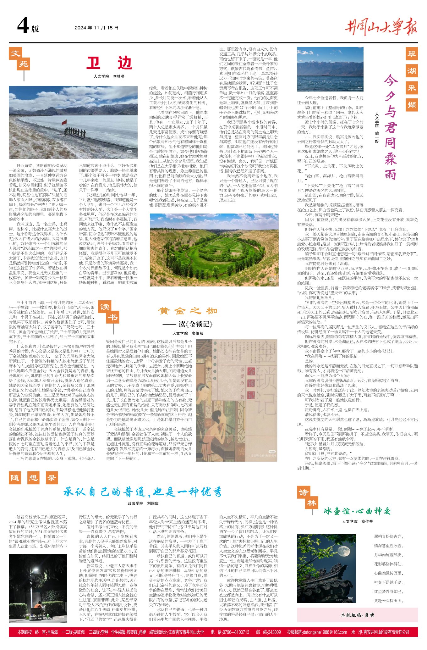 我叫卫边, 是一名士兵, 士兵嘛, 也称卒, 比起什么高大上的战士, 这个称呼适合我得多。 为什么呢?因为在偌大的沙漠里,我是很渺小的, 就好像古代一个叫苏轼的词人说过“渺沧海之一粟”的那样,那句话是不是这么说的, 我已经记不太清了,毕竟我没读过什么书,这只是偶然听到学生们念的一句话,不知怎么就记了许多年。 若是放在棋盘里来说, 我也只是无关轻重的一枚棋子, 多我一颗或者少我一颗都不会影响什么的。我来到这里,只是不知道应该干点什么, 正好听说祖国的边疆需要人, 脑袋一热也就来了。那个汉子可不一样喽,他是我这十几年来唯一的朋友,钟书,他是干啥的? 在我看来,他是很伟大的,他只干一件事———治沙。我到这儿的时间比他早一年,平时就和他唠唠嗑, 我知道他是一个大学生, 来自一个正儿八经有名有姓的好大学, 这年头一个大学生多难见啊, 何况是在这么偏远的沙漠。可想而知我当时有多震惊了,我问他来这干嘛, 为什么不去更发达的地方呢, 他只说了 8 个字,“国家所需,使命必达”我听不懂他说的是啥,但大概连蒙带猜猜着点意思,他说这话时,语气十分坚决。看着这个细皮嫩肉的青年, 我对他的话抱有怀疑, 我觉得他不几天可能就受不了,要离开这了,这可不是我瞧不起他,只是沙漠的环境异常恶劣,我一个农村汉都熬不住, 何况是个如此白净的青年。 出乎意料的,他没走,一待就是十年, 我看着他一铁锹一铁锹地种树, 看着满目的黄变成黄绿色, 看着他在失败中摸索出种树的经验: 如何挖沟、 树苗行间距多少、多长时间浇一次水。看着他从人工栽种到引入机械规模化的种树,看着经年不休的风沙逐渐平息。
