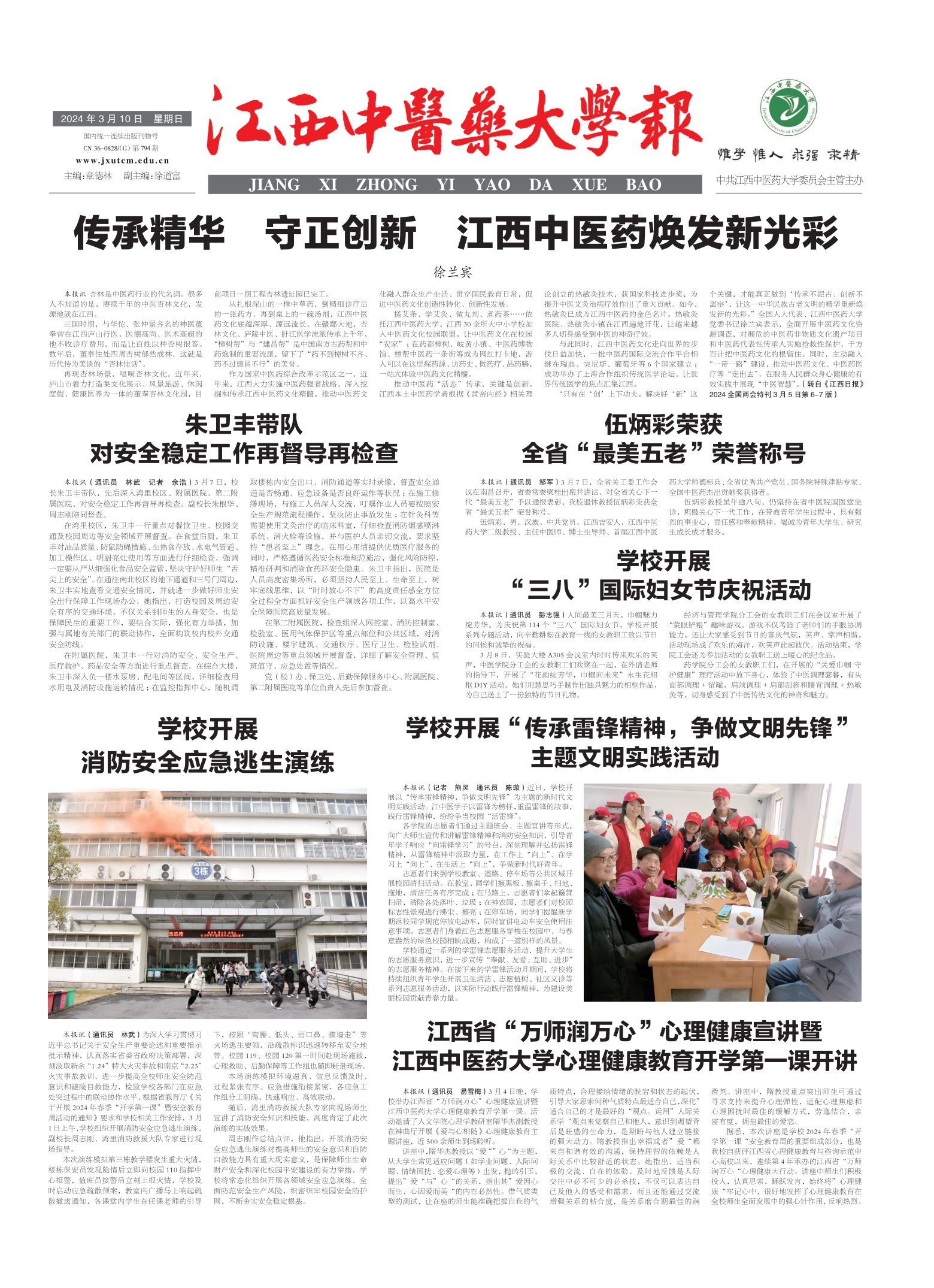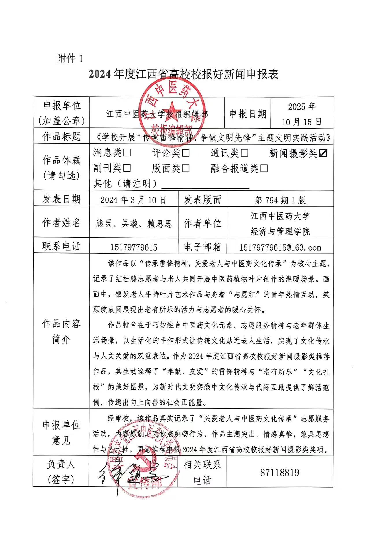 本报讯(记者 熊灵 通讯员 陈璇)近日,学校开展以“传承雷锋精神,争做文明先锋”为主题的新时代文明实践活动。江中医学子以雷锋为榜样,重温雷锋的故事,践行雷锋精神,纷纷争当校园“活雷锋”。