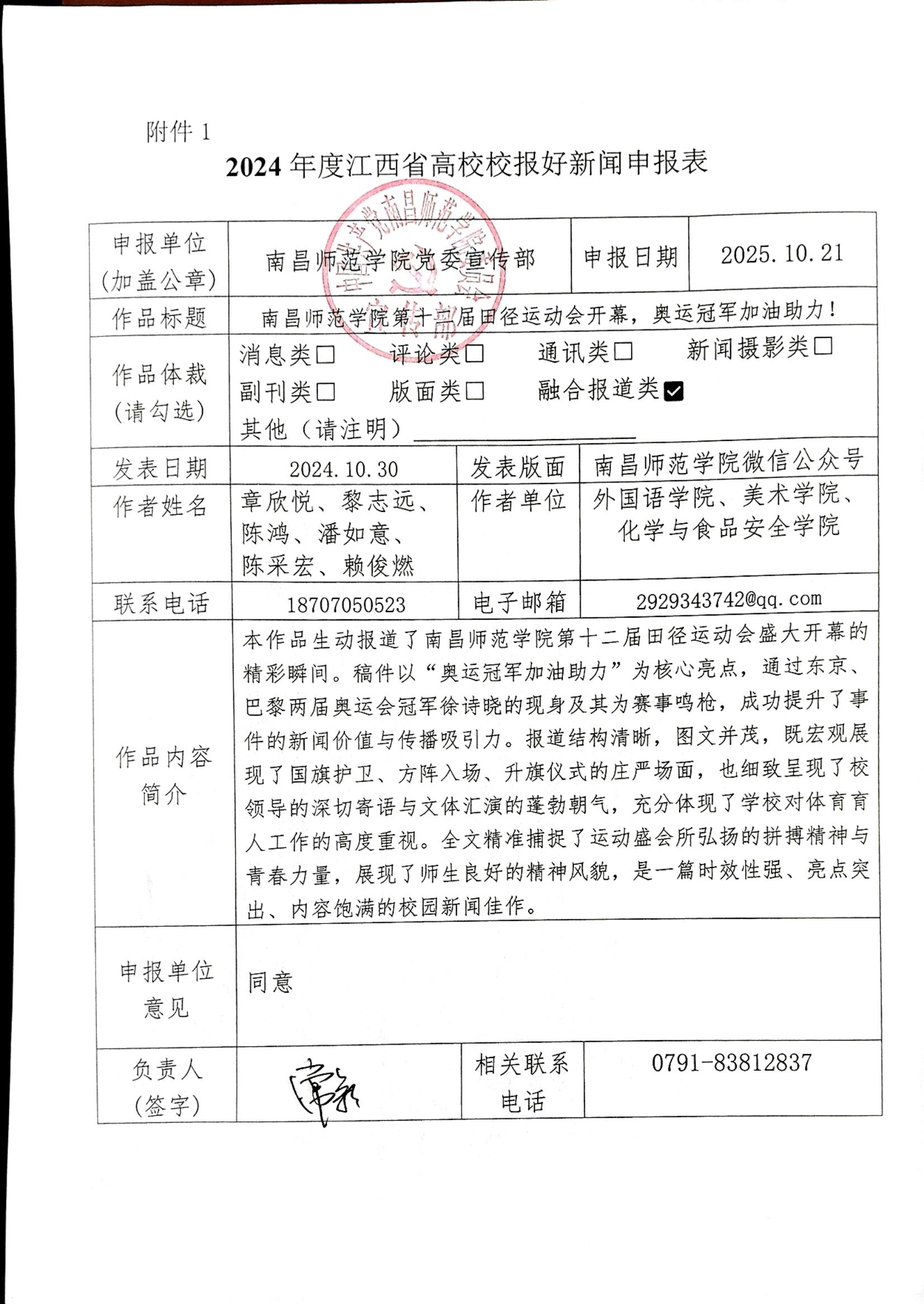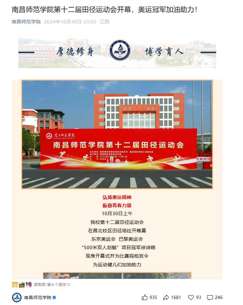 南昌师范学院第十二届运动会开幕,奥运冠军加油助力!