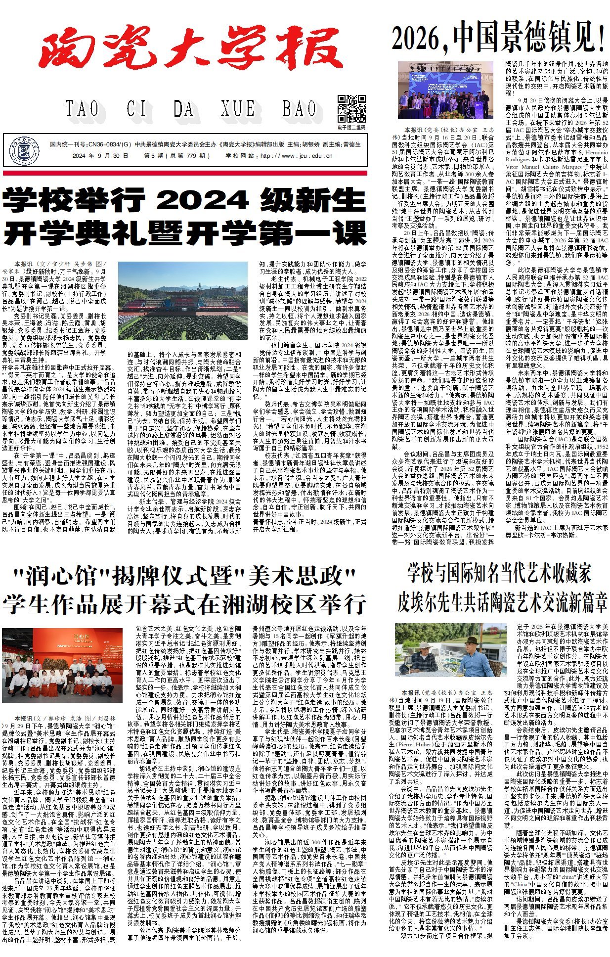本报讯(文/郭珍珍 袁浩 图/刘昌林)9月29日下午,景德镇陶瓷大学"润心馆"揭牌仪式暨"美术思政"学生作品展开幕式在湘湖校区举行。党委副书记、副校长(主持行政工作)吕品昌出席开幕式并为"润心馆"揭牌。校党委副书记吴磊,党委委员、副校长黄勇,党委委员、副校长胡银娇,党委委员、纪委书记王金海,党委委员、党委组织部部长杨志民,党委委员、党委宣传部部长曾德生出席开幕式。开幕式由胡银娇主持。