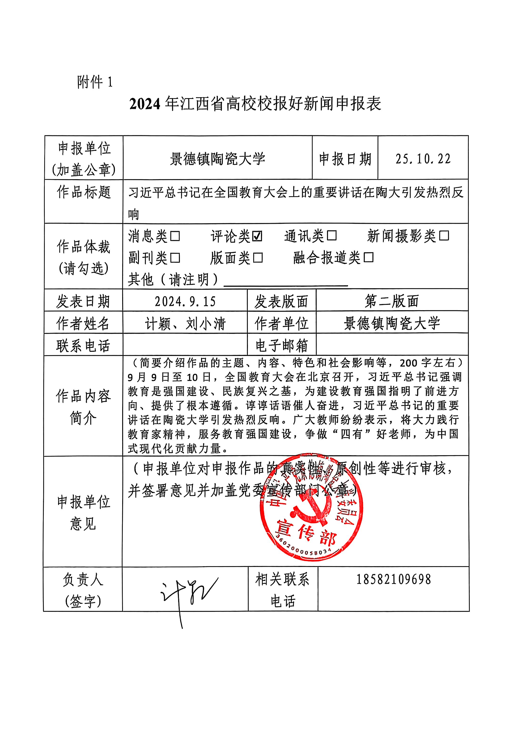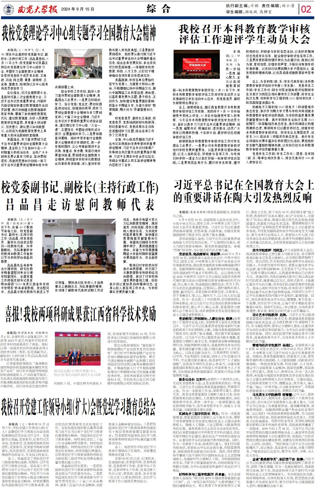 谆谆话语催人奋进,习近平总书记的重要讲话在陶瓷大学引发热烈反响。广大教师纷纷表示,将大力践行教育家精神,服务教育强国建设,争做“四有”好老师,为中国式现代化贡献力量。