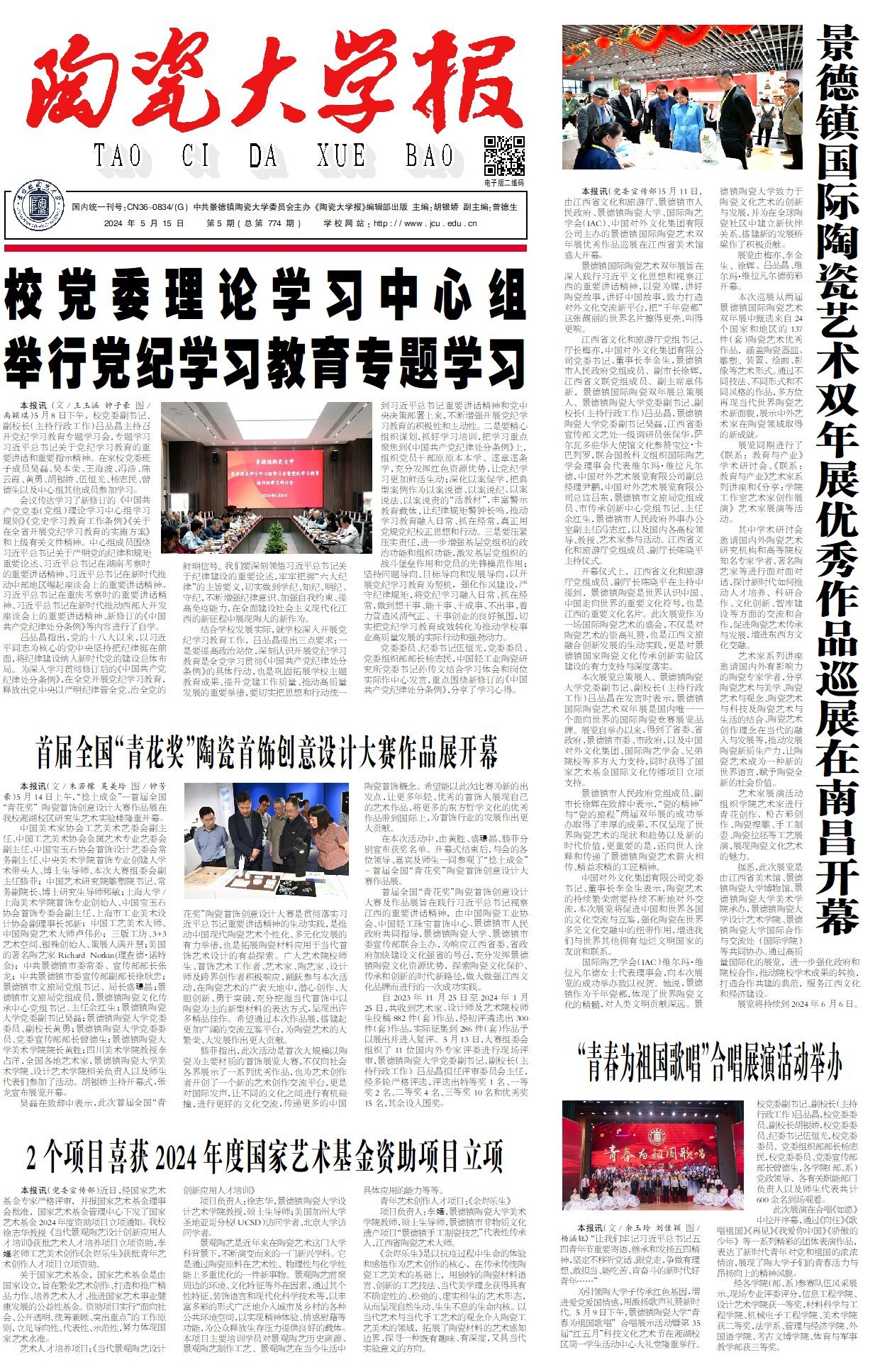 本报讯(党委宣传部)5月11日,由江西省文化和旅游厅、景德镇市人民政府、景德镇陶瓷大学、国际陶艺学会(IAC)、中国对外文化集团有限公司主办的景德镇国际陶瓷艺术双年展优秀作品巡展在江西省美术馆盛大开幕。