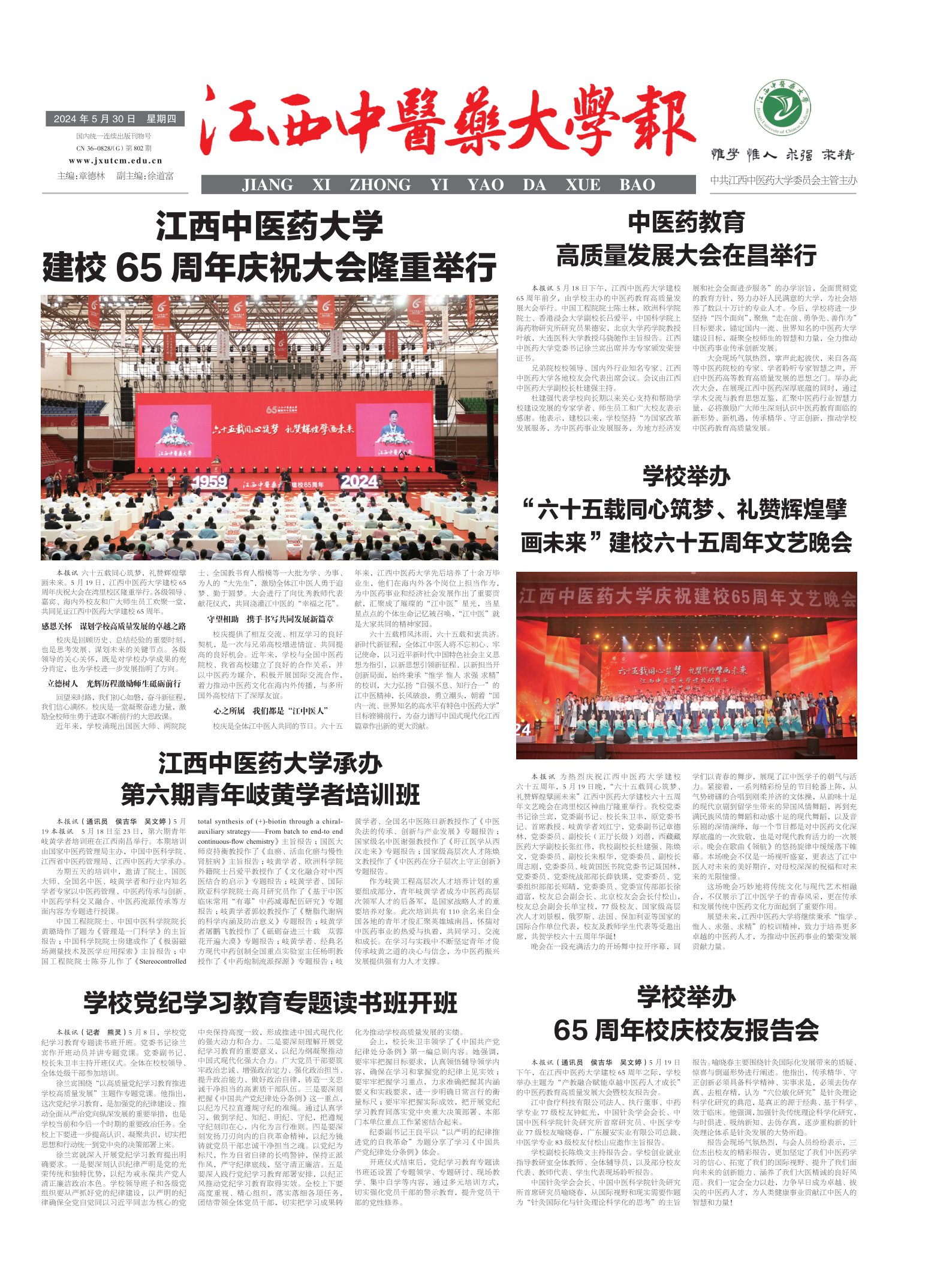 5 月 19 日下午,在江西中医药大学建校 65 周年之际,学校举办主题为“产教融合赋能卓越中医药人才成长”的中医药教育高质量发展大会暨校友报告会。