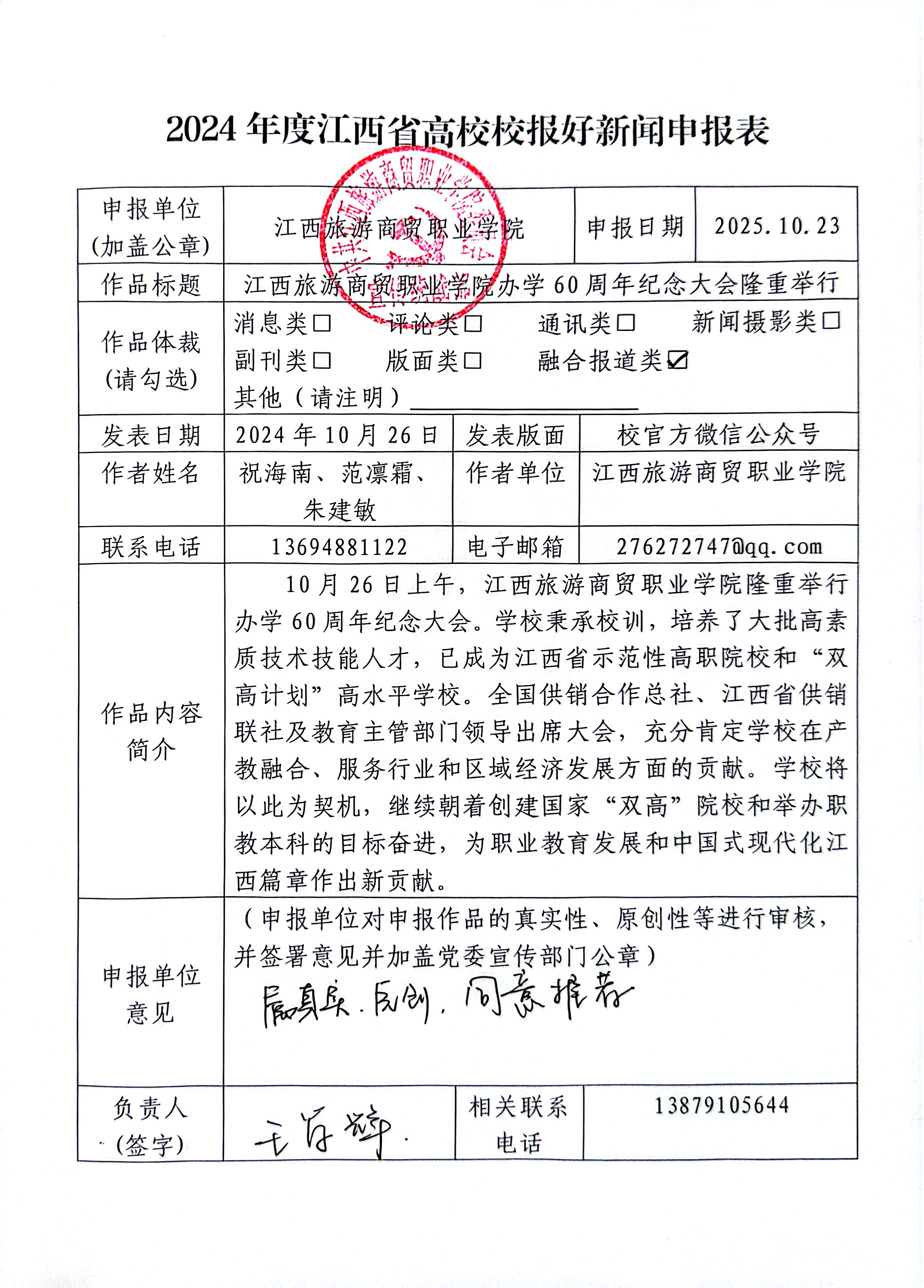 六秩芳华,薪火相传。10月26日上午,江西旅游商贸职业学院办学60周年纪念大会在学校文体中心大礼堂隆重举行。