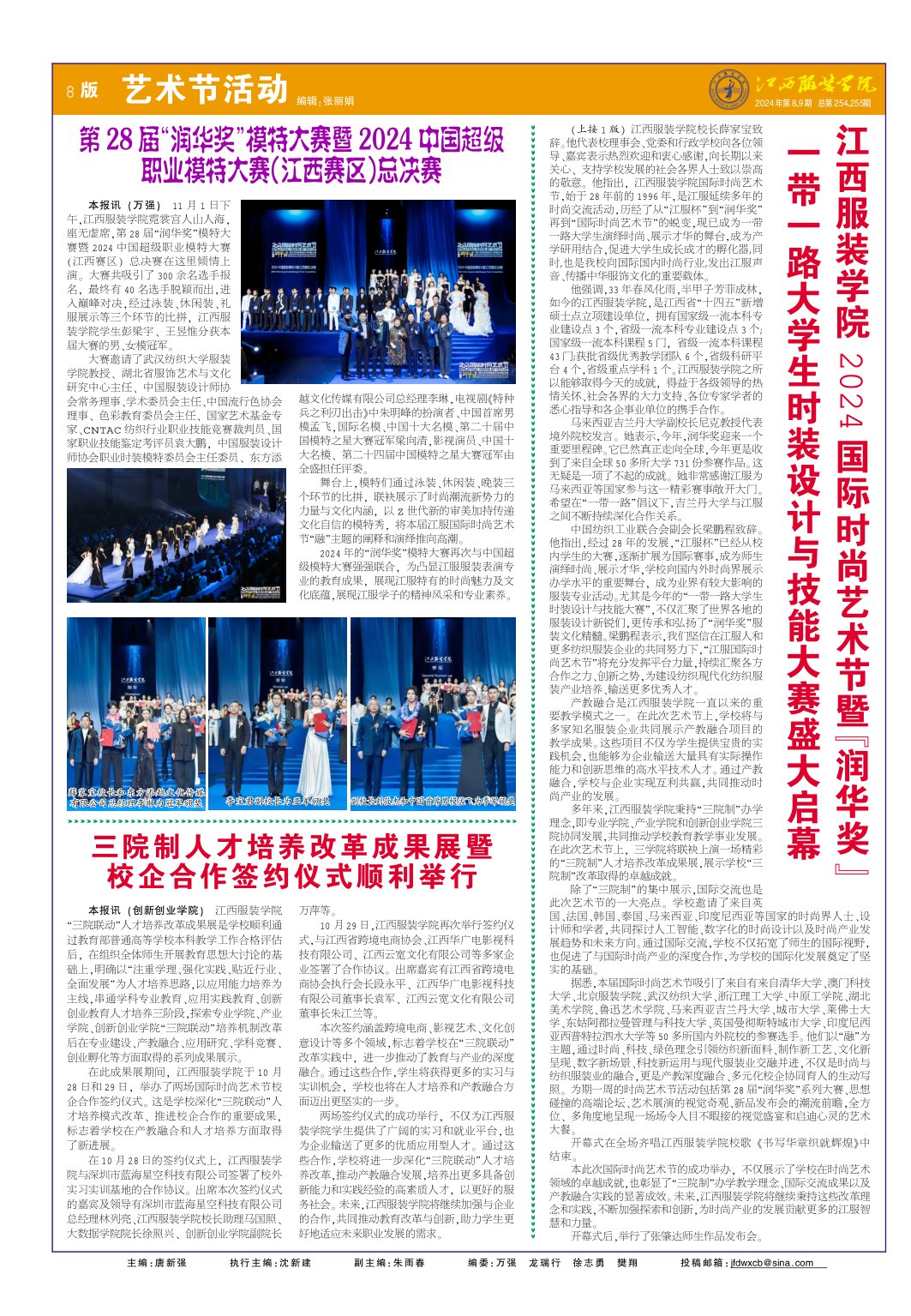 2024 年的“润华奖”模特大赛再次与中国超级模特大赛强强联合, 为凸显江服服装表演专业的教育成果, 展现江服特有的时尚魅力及文化底蕴,展现江服学子的精神风采和专业素养。