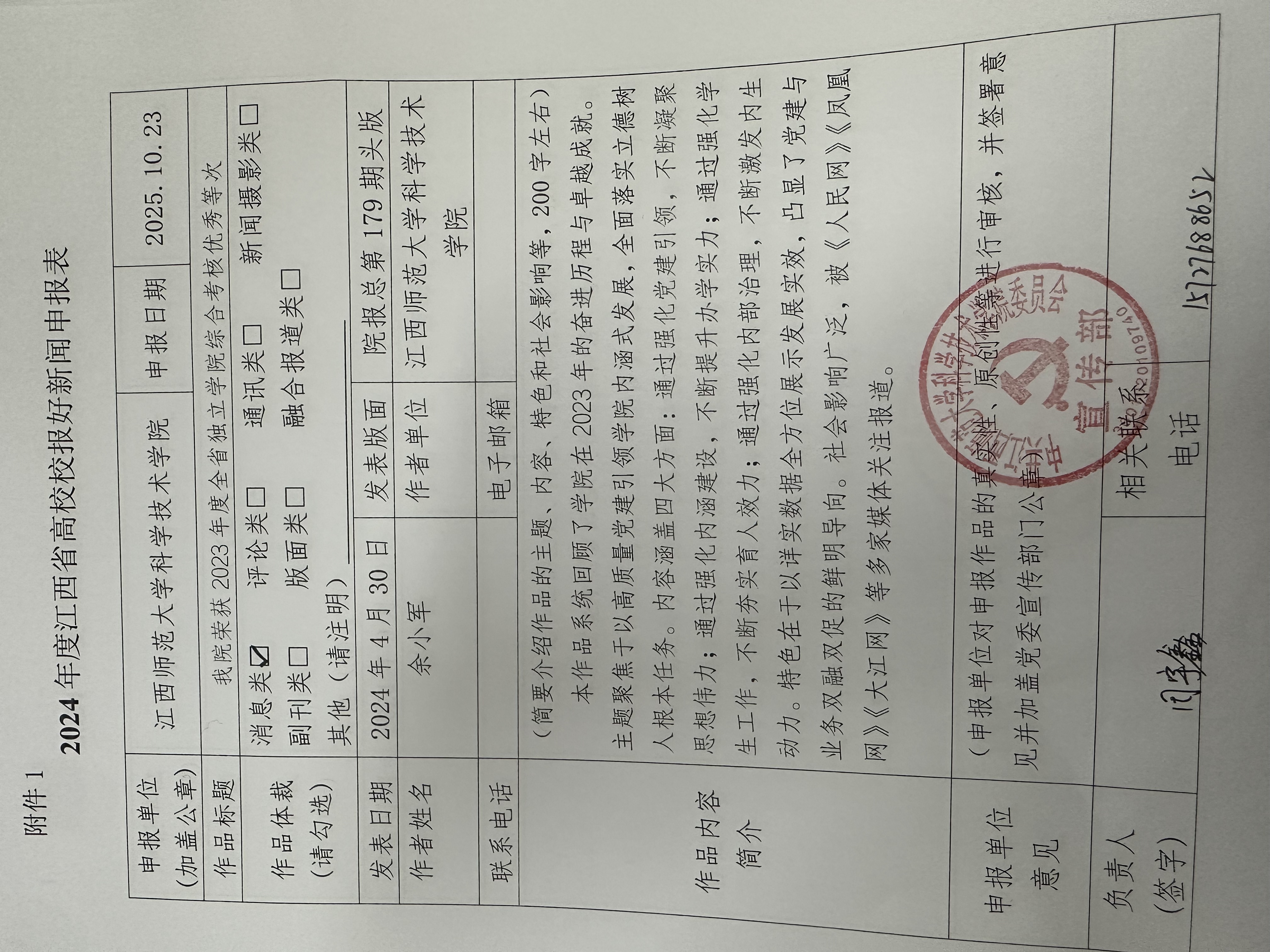 2023年,学院强化内部治理,不断激发内生动力。严格执行党委会、党政联席会议事规则和“三重一大”决策制度,修订完善十余项规章制度。盘活、扩展校产资源,提升服务保障能力和水平,完成十余项民生实事。喜获“2023年度江西省节水型高校”称号,江西省第五届校园“节水大使”称号。央视、人民网、央广网、学习强国平台、江西卫视等主流媒体报道300余篇(次),3次被中央电视台《新闻联播》《朝闻天下》等栏目报道。在社会第三方评价中,位居全国独立学院第20名,继续保持全省独立学院首位。维护校园安全稳定,营造平安育人环境。