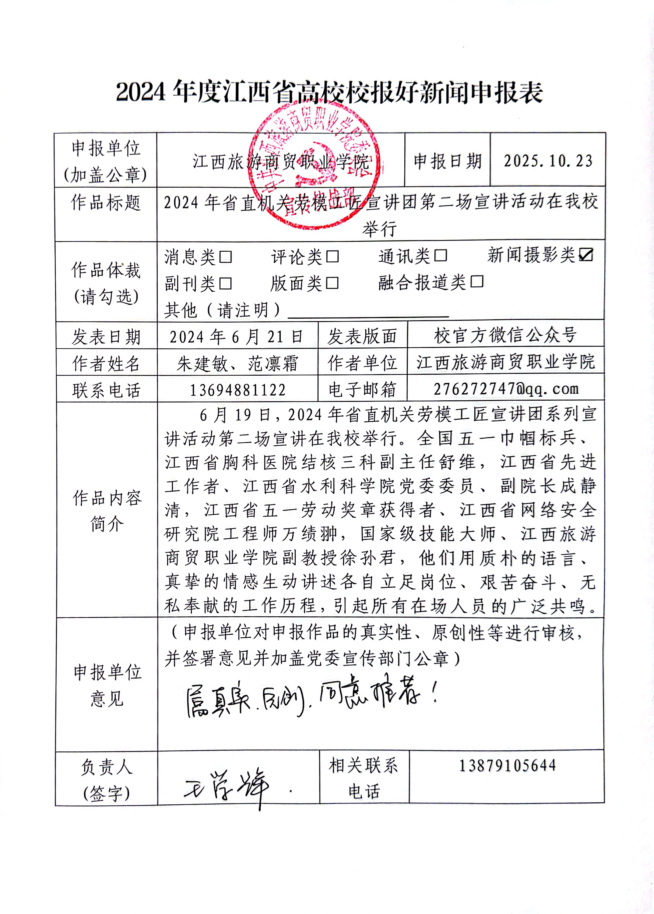 2024年省直机关劳模工匠宣讲团第二场宣讲活动在我校举行