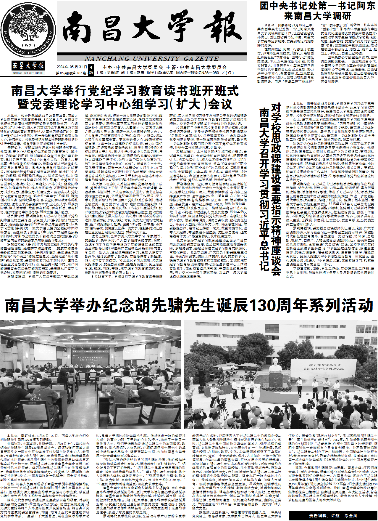 共续弦歌、共襄盛举、共谱新篇。5月24日上午,学校举办纪念胡先骕先生诞辰130周年座谈会,缅怀和追忆南昌大学重要源头之一国立中正大学首任校长暨生物系创办人、教育家、文学批评家、诗人胡先骕先生为世界与中国植物学界所作出的杰出贡献,追思胡先骕先生为我国教育界与学术界不懈奋斗的光辉一生,回顾胡先骕先生为南昌大学发展做出的开创性和杰出贡献,学习和传承胡先骕先生的优秀精神品质,为学校改革发展提供精神动力。校党委书记罗嗣海出席会议并讲话,校长、中国科学院院士陈晔光出席会议并致辞,副校长葛刚主持会议。