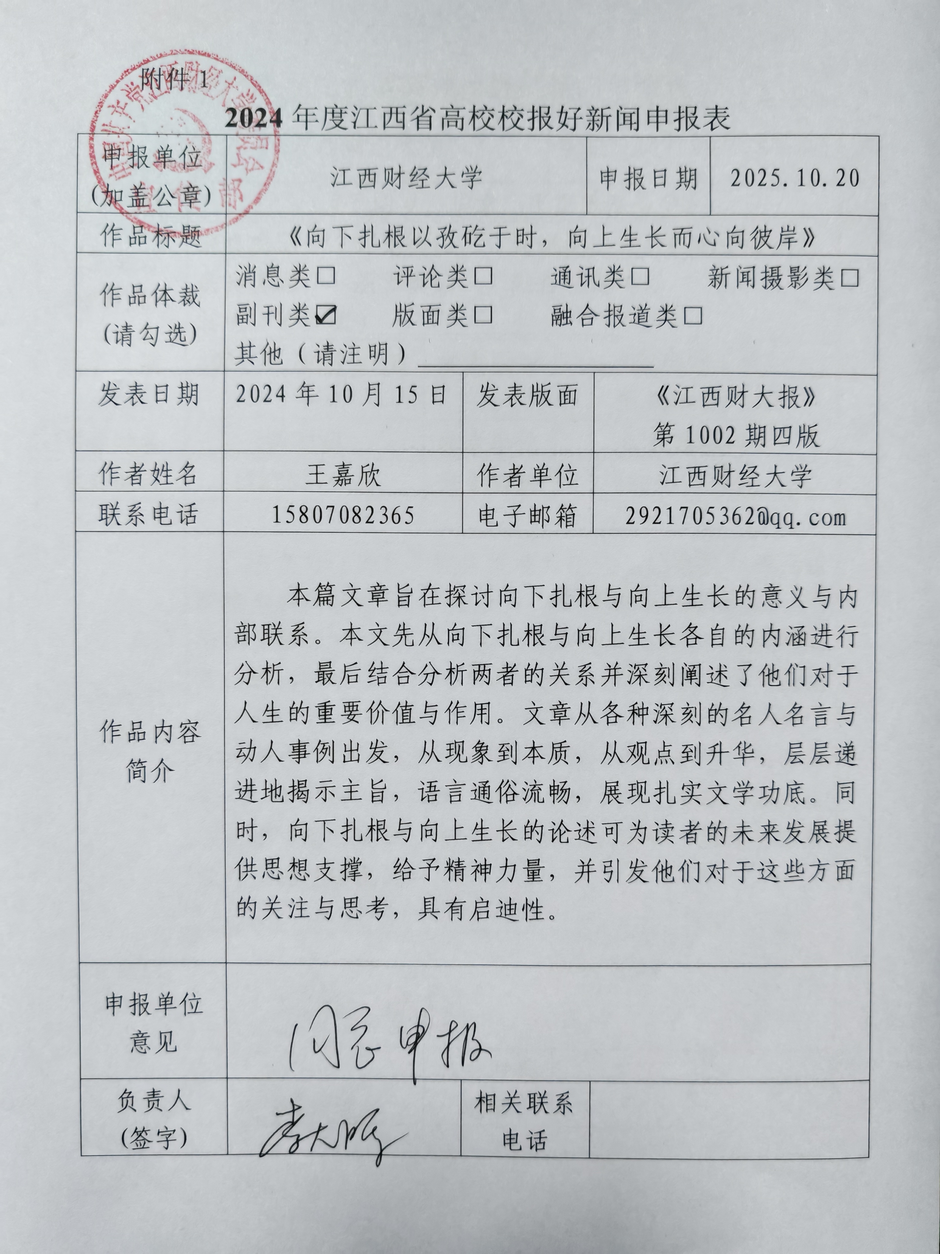 “命定的局限尽可永在,不屈的挑战却不可须臾或缺。”向上生长意为不断地超越与挑战自我,上天给每个人的生命的长度设了限,给每个人的能力设了限,但却没有给生命的深度与广度设限,有些人会因为自我的限制而放弃了向上的机会,庸俗一生;但更多人会不畏蹭蹬,踏碎坎壈,正如黄文秀一般,虽出身贫寒,但依旧凭借自我的坚韧与努力,从崎岖山路中走出来,而她在学习毕业以后依旧牵挂家乡发展,毫不犹豫投入到家乡的建设之中。因此正值青春年少的我们更应该激励自我不断向上生长,激发自我潜能,为社会的建设奉献自我。