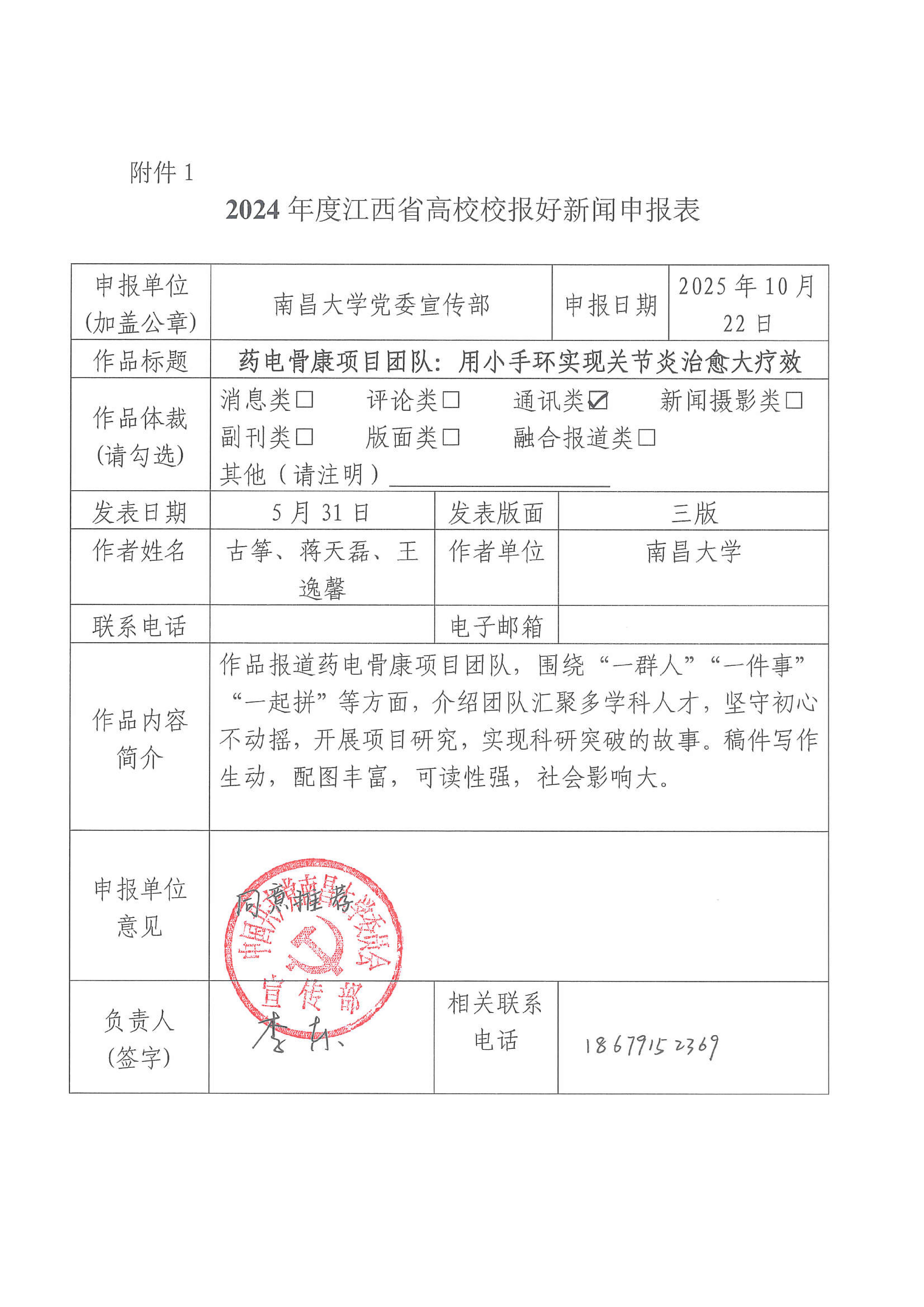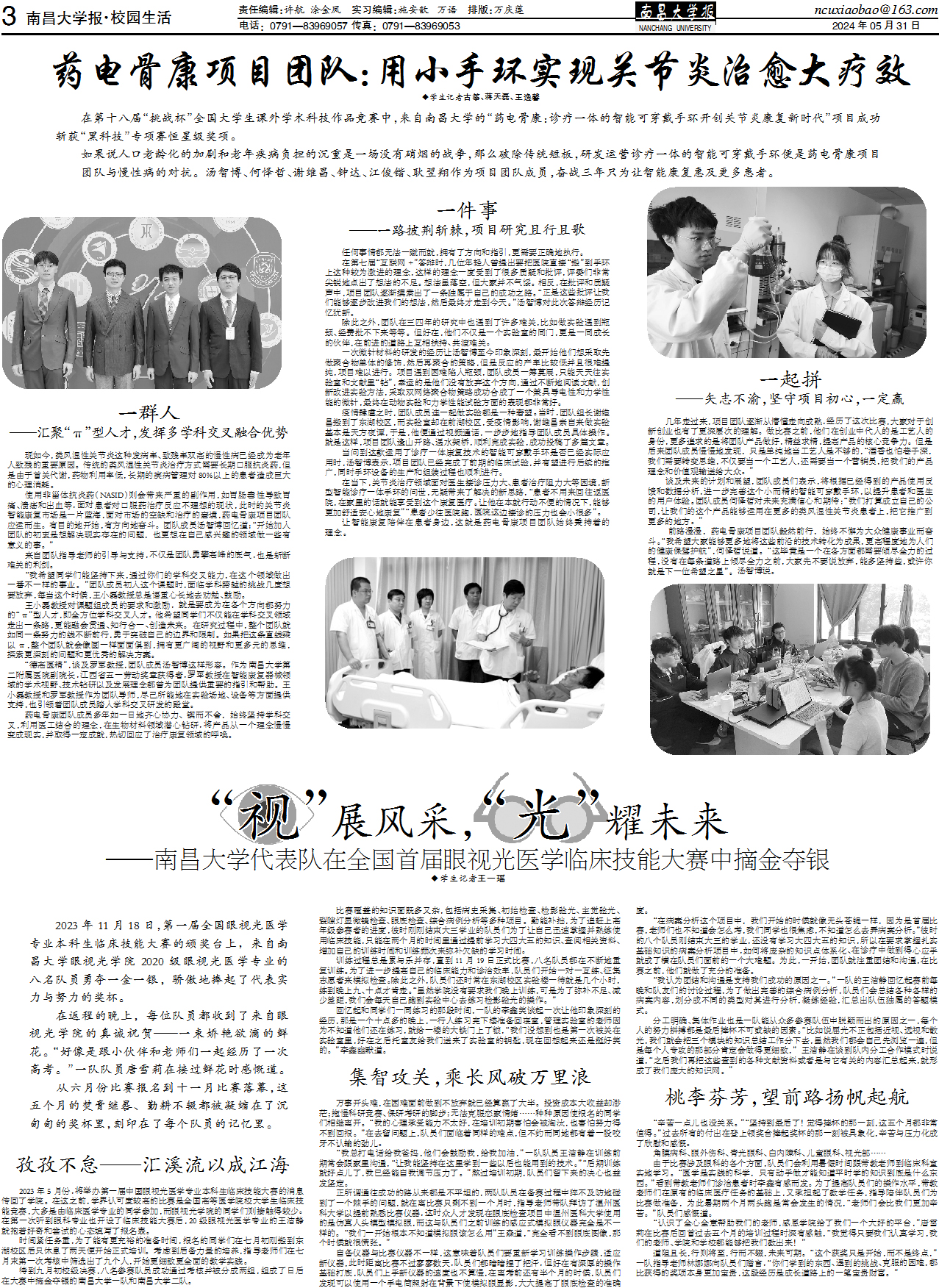 在第十八届“挑战杯”全国大学生课外学术科技作品竞赛中,来自南昌大学的“药电骨康:诊疗一体的智能可穿戴手环开创关节炎康复新时代”项目成功斩获“黑科技”专项赛恒星级奖项。