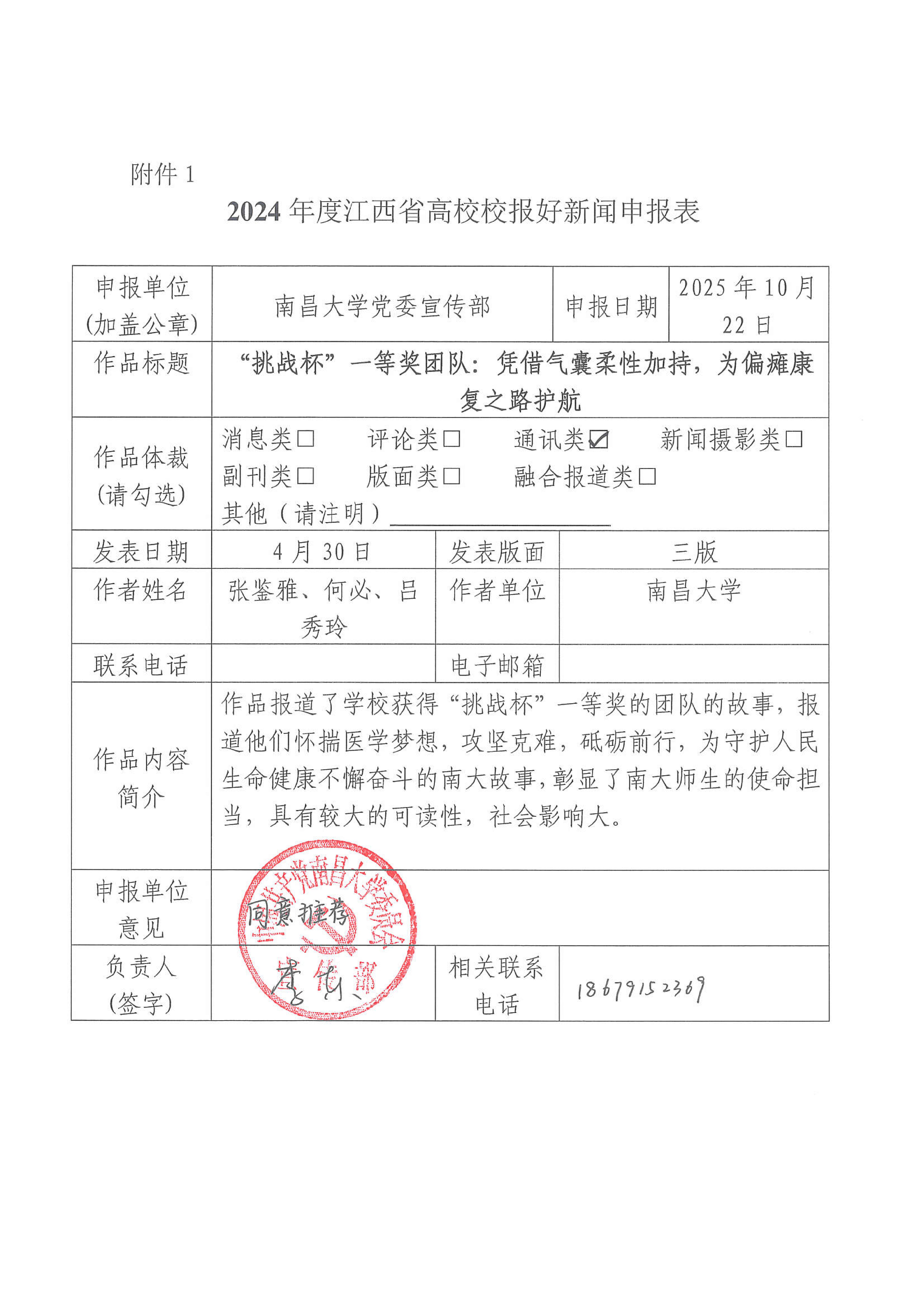 就像重见光明之于盲人,重新行走是下肢偏瘫患者最渴望的一件事。在第十八届“挑战杯”全国大学生课外学术科技作品竞赛中,南昌大学第二临床医学院申报的《气动协调式智能下肢康复外骨骼》项目获得全国一等奖。该项目创新结合刚性驱动与气动按摩功能,将下肢偏瘫患者的渴望进一步变成现实。
