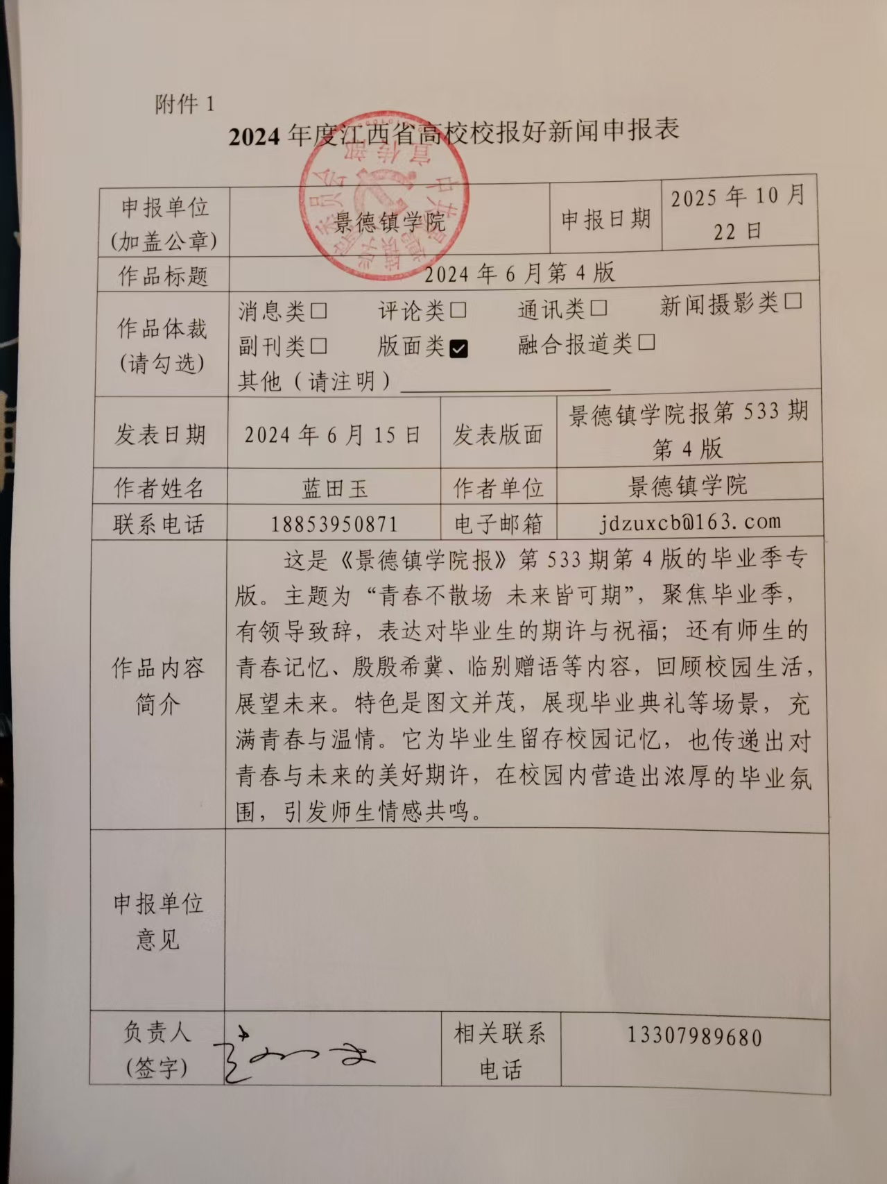 这是《景德镇学院报》第533期第四版的毕业季专版。
