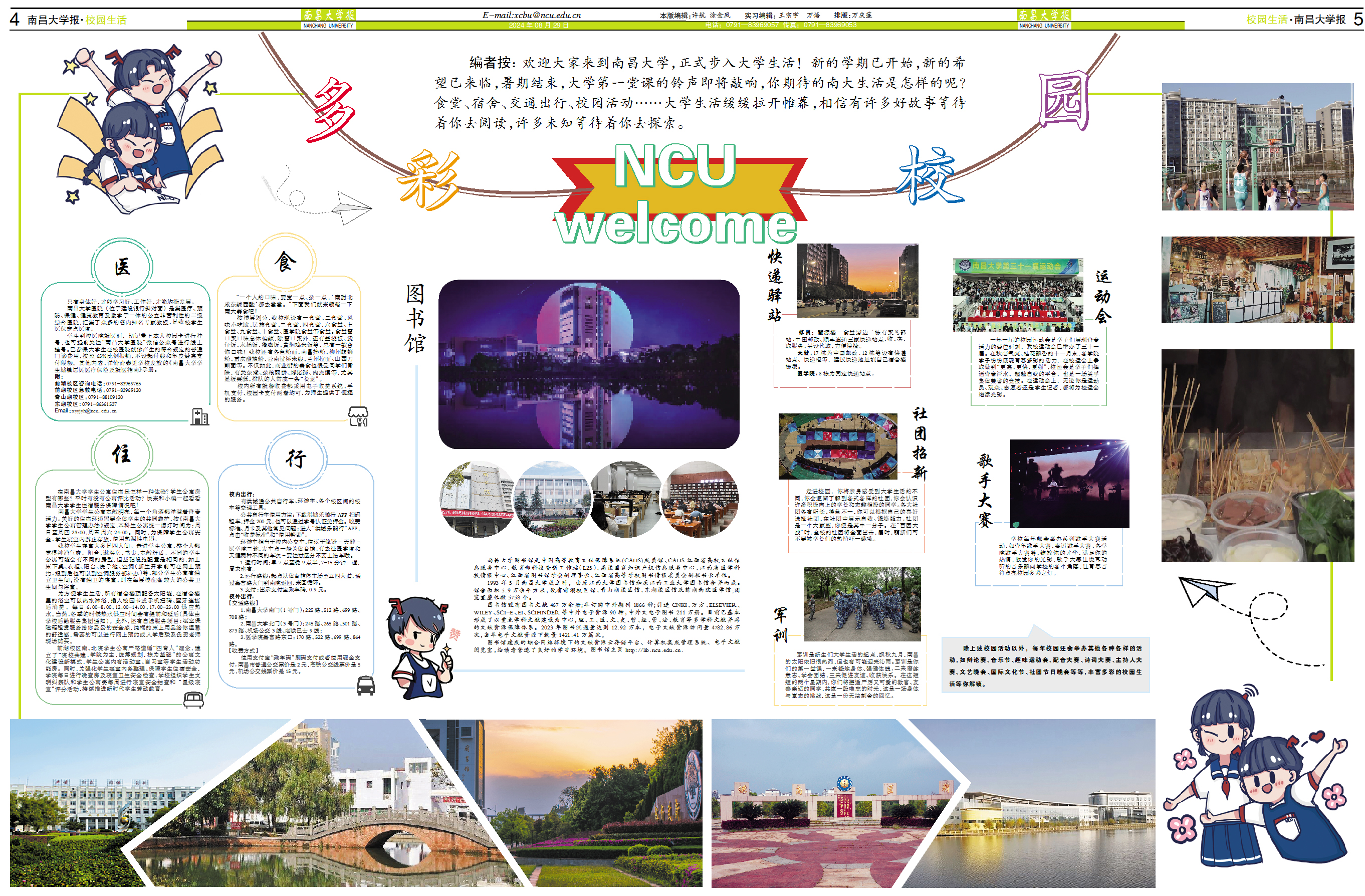 编者按: 欢迎大家来到南昌大学,正式步入大学生活!新的学期已开始,新的希望已来临,暑期结束,大学第一堂课的铃声即将敲响,你期待的南大生活是怎样的呢?食堂、宿舍、交通出行、校园活动……大学生活缓缓拉开帷幕,相信有许多好故事等待着你去阅读,许多未知等待着你去探索。