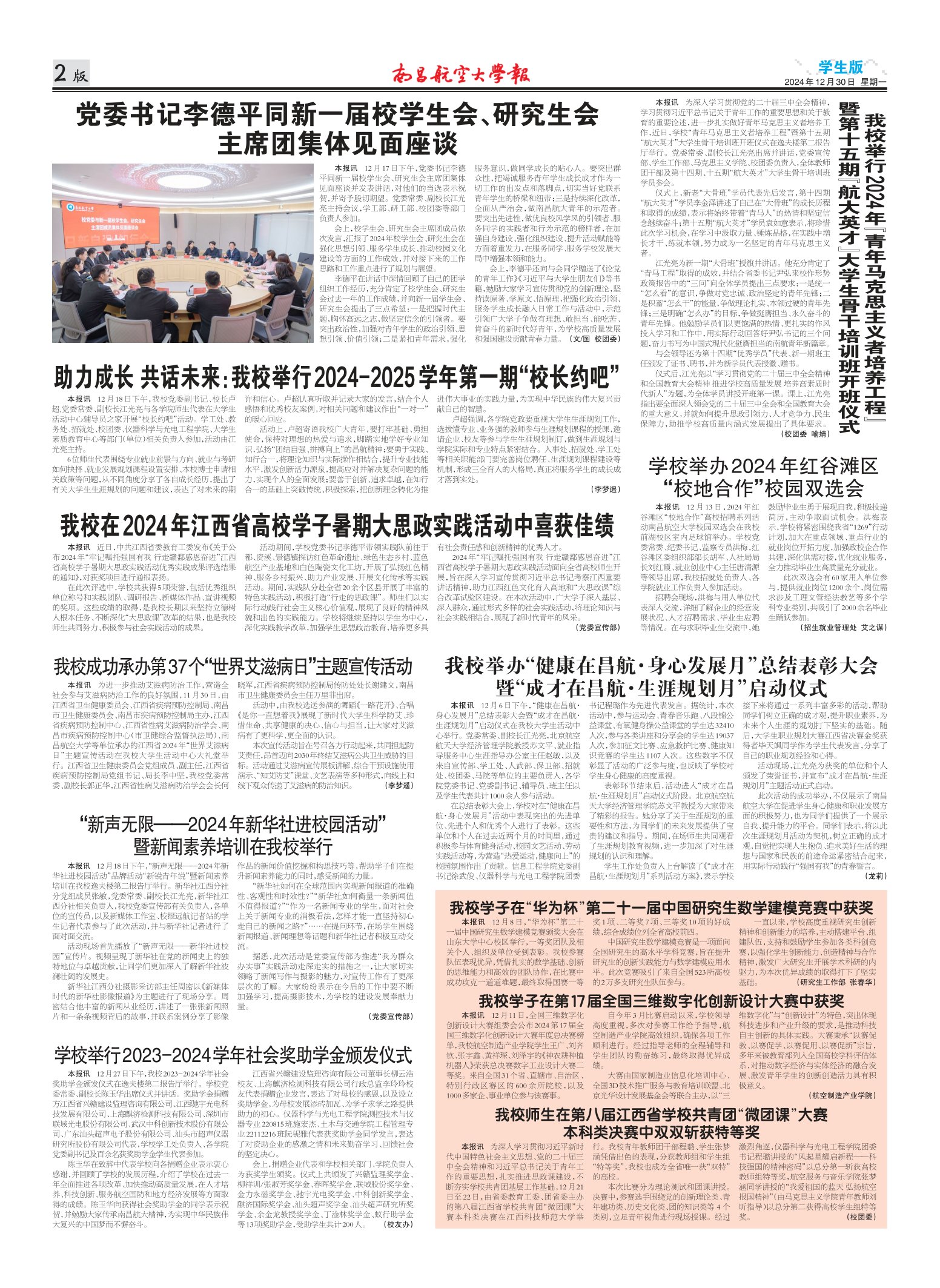 李德平在讲话中深情回顾了自己的团学组织工作经历,充分肯定了校学生会、研究生会过去一年的工作成绩,并向新一届学生会、研究生会提出了三点希望:一是把握时代主题,胸怀高远之志,做坚定信念的引领者。要突出政治性,加强对青年学生的政治引领、思想引领、价值引领;二是紧扣青年需求,强化服务意识,做同学成长的贴心人。要突出群众性,把竭诚服务青年学生成长成才作为一切工作的出发点和落脚点,切实当好党联系青年学生的桥梁和纽带;三是持续深化改革,全面从严治会,做南昌航大青年的示范者。要突出先进性,做优良校风学风的引领者、服务同学的实践者和行为示范的榜样者,在加强自身建设、强化组织建设、提升活动赋能等方面着重发力,在服务同学、服务学校发展大局中增强本领和能力。