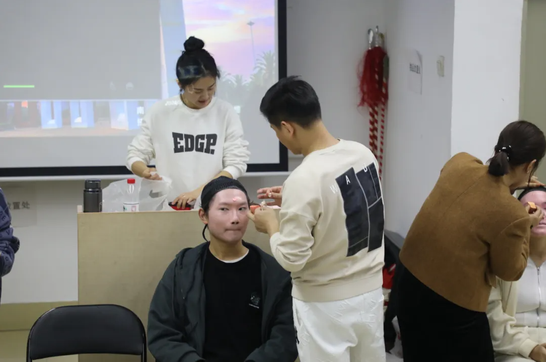 周五晚上,南昌大学慧源楼125教室,悠扬的曲声、阵阵的掌声和欢呼声此起彼伏……假如这时你从门外经过,或许可以透过玻璃看到同学们激动地伸着脑袋看向讲台,看到水袖在空中飞舞后留下的影子,看到老师们围着几位学生为他们化妆、做造型。这不是正在演出的剧场,而是陈俐老师讲授的课程——《赣剧艺术鉴赏》。