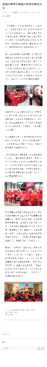 研学中,学子们在“川庆榜样”“基层党建百面红旗”的荣誉墙前驻足,习总书记“对党忠诚、纪律严明、赴汤蹈火、竭诚为民”训词精神及“练兵千日、用兵一时”作训基地标语中感受精神传承。“要把‘丹心报祖国’的信念融入专业学习中。”西南石油大学的学生们纷纷表示,此次研学实践不仅夯实了井控理论知识,更坚定了今后投身石油事业的决心。